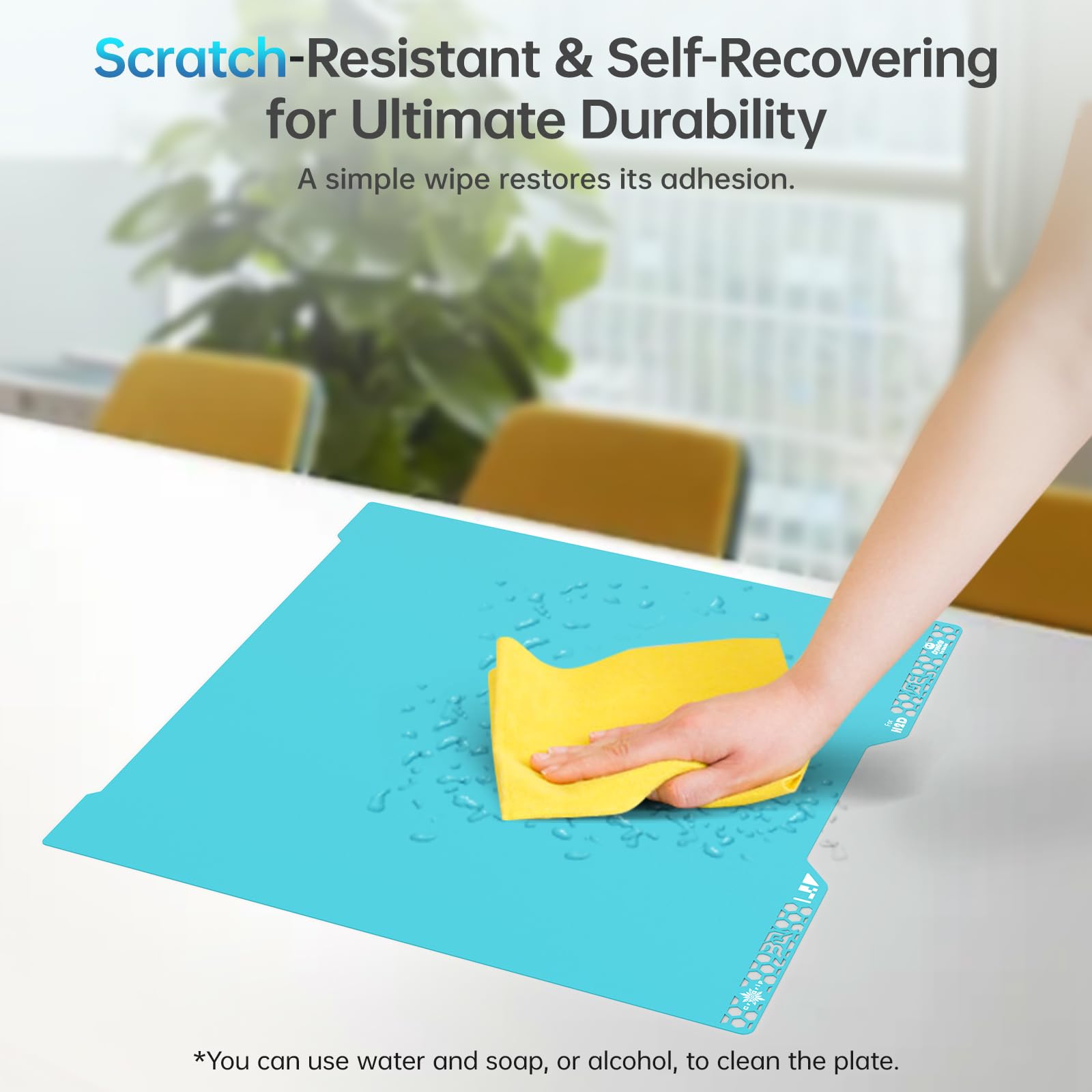 Sie gewährleistet eine herausragende Haftung der ersten Schicht durch eine stark magnetische Unterseite und eine spezielle Kobaltoxid-Beschichtung. Dies reduziert Warping (das Verziehen von Kanten) auf ein Minimum und erhöht die Erfolgsquote Ihrer Drucke signifikant. Zusätzlich verleiht die feine Oberflächentextur der Unterseite Ihrer Modelle ein glattes und sauberes Finish.
