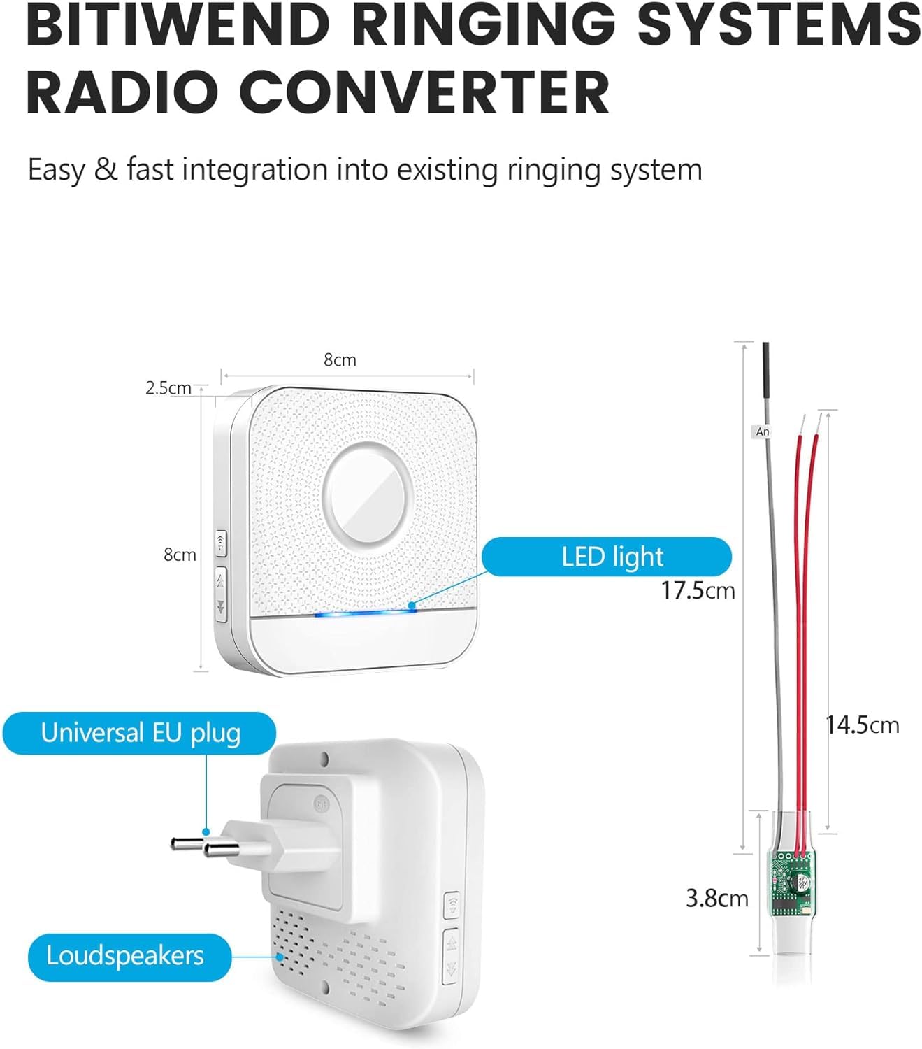 - Universell kompatibel mit elektronischen, elektromechanischen und mechanischen Klingeln.