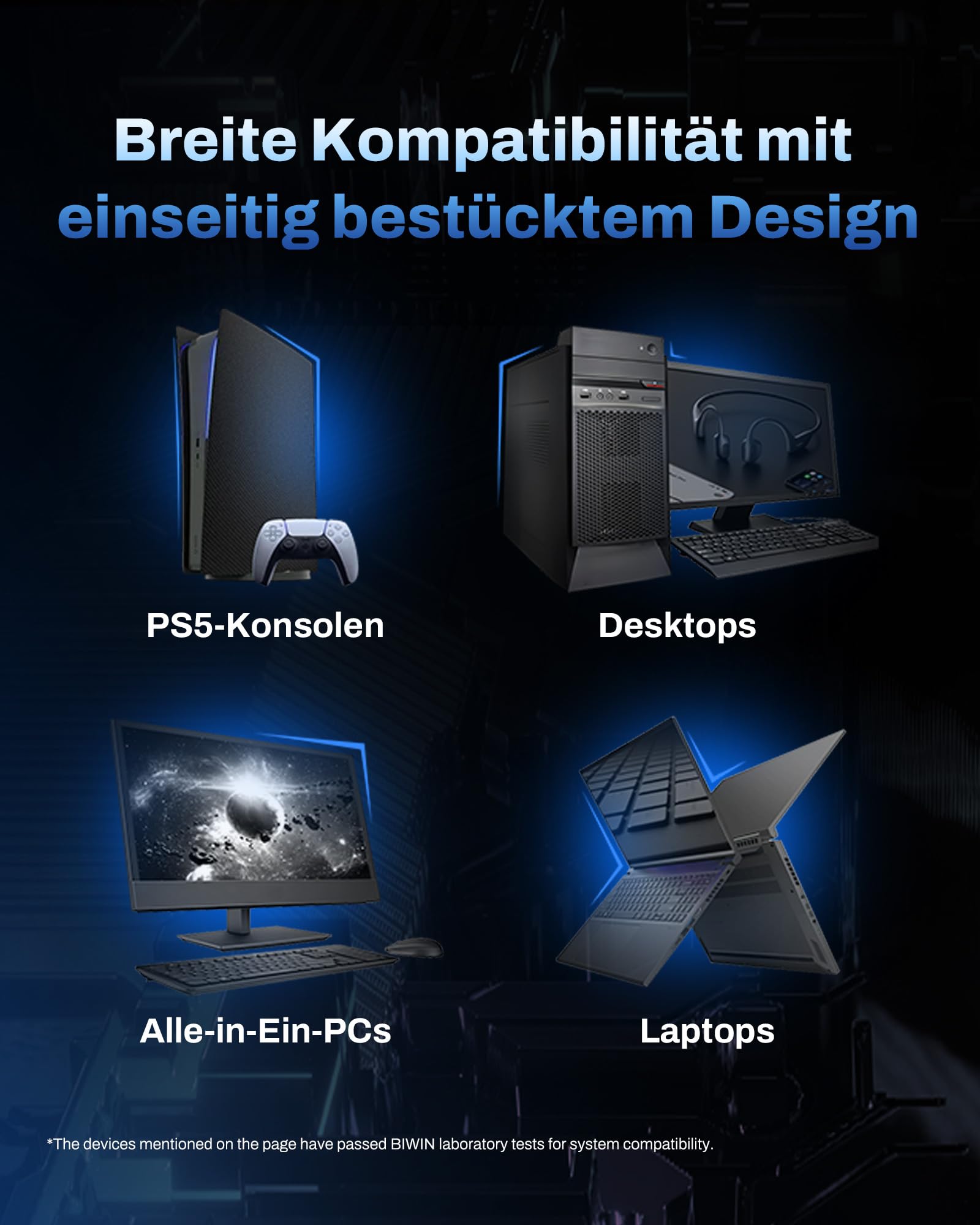 - Universelle Kompatibilität: Das schlanke, einseitige M.2-Design gewährleistet eine problemlose Integration in Desktops, Laptops und ist vollständig mit der PlayStation 5 kompatibel.