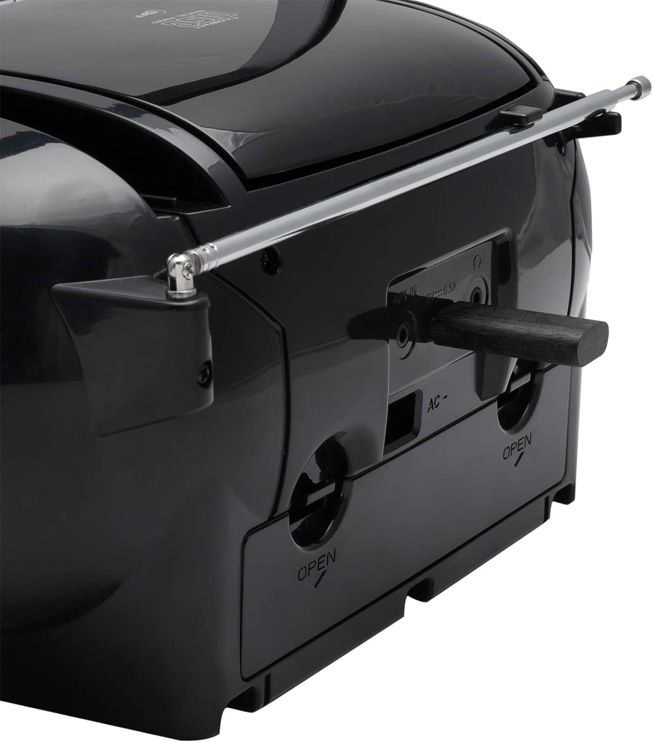 - Vielseitige Wiedergabe: Integrierter Toplader-CD-Player, Kassettendeck und drahtlose Bluetooth-Konnektivität für Musik-Streaming.
