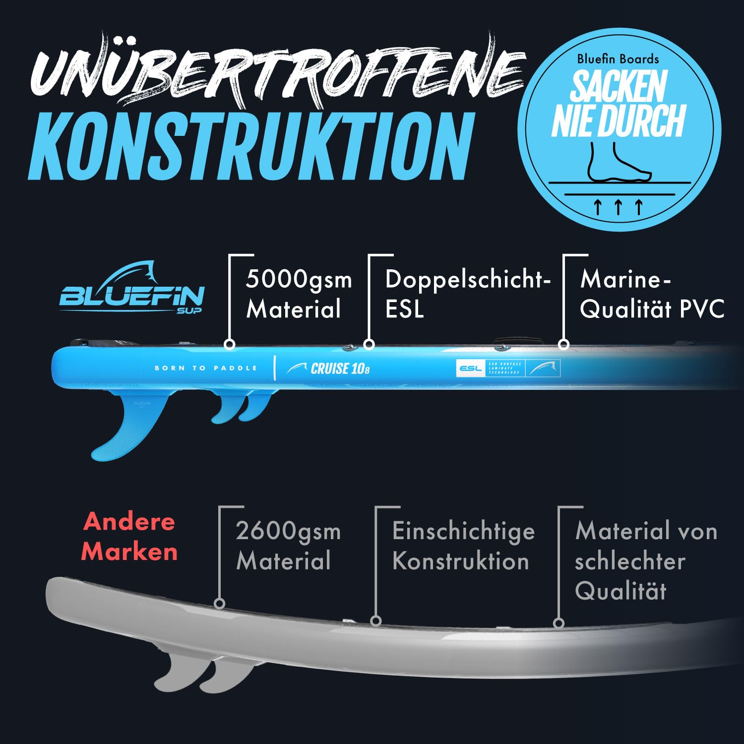 Was macht das Bluefin Cruise SUP Board so besonders stabil und langlebig?