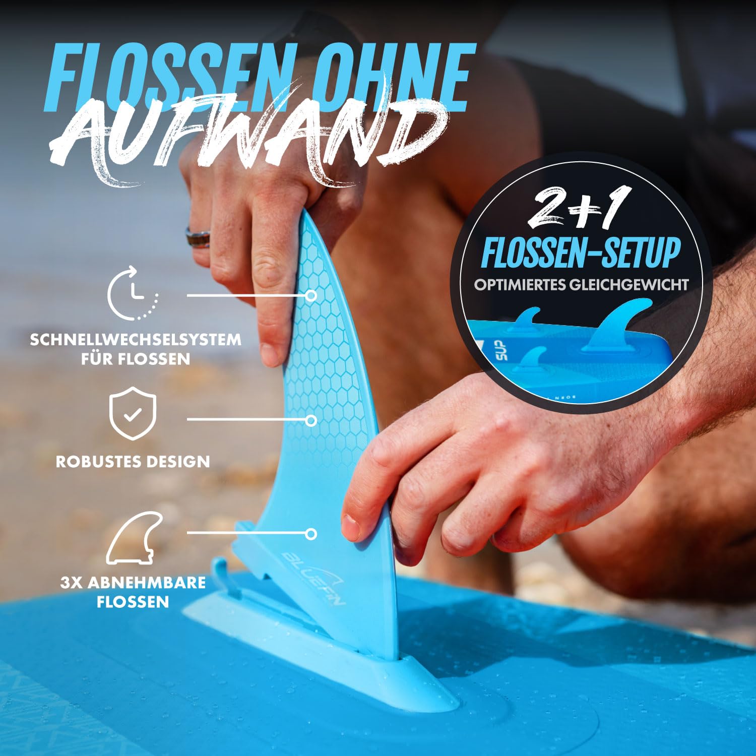 Als All-in-One-Paket enthält das Set alles, was Sie für Ihr Abenteuer benötigen: das SUP-Board, ein verstellbares Paddel, eine Doppelhubpumpe, einen Rucksack, eine Sicherheitsleine (Leash) und eine abnehmbare Finne. So sind Sie sofort startklar.