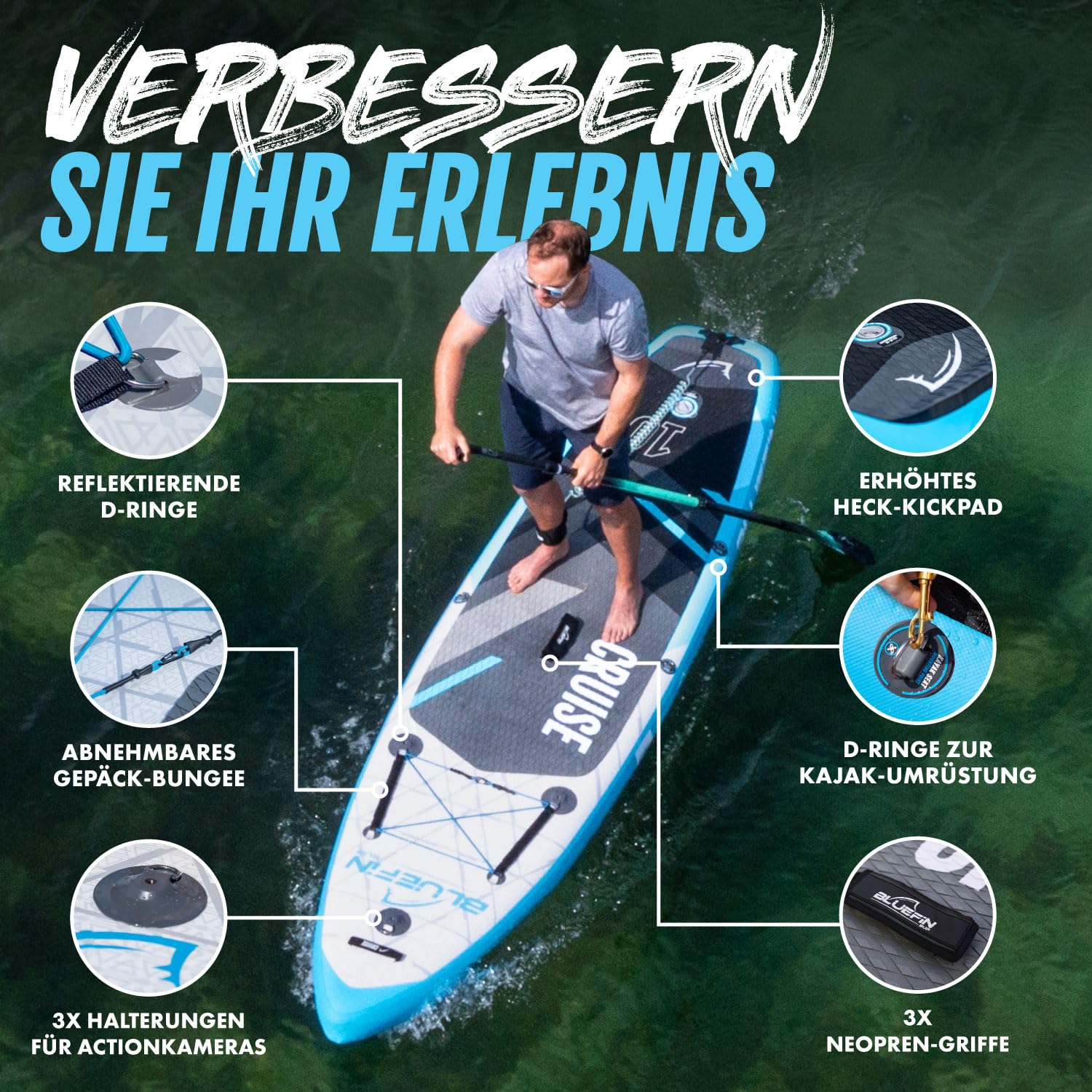 Entdecken Sie das Bluefin Cruise SUP Board Set, ein umfassendes Paket, das von Paddleboard-Enthusiasten für höchste Ansprüche konzipiert wurde. Es vereint ein preisgekröntes Design mit robusten Materialien für maximale Stabilität und Vielseitigkeit auf dem Wasser.