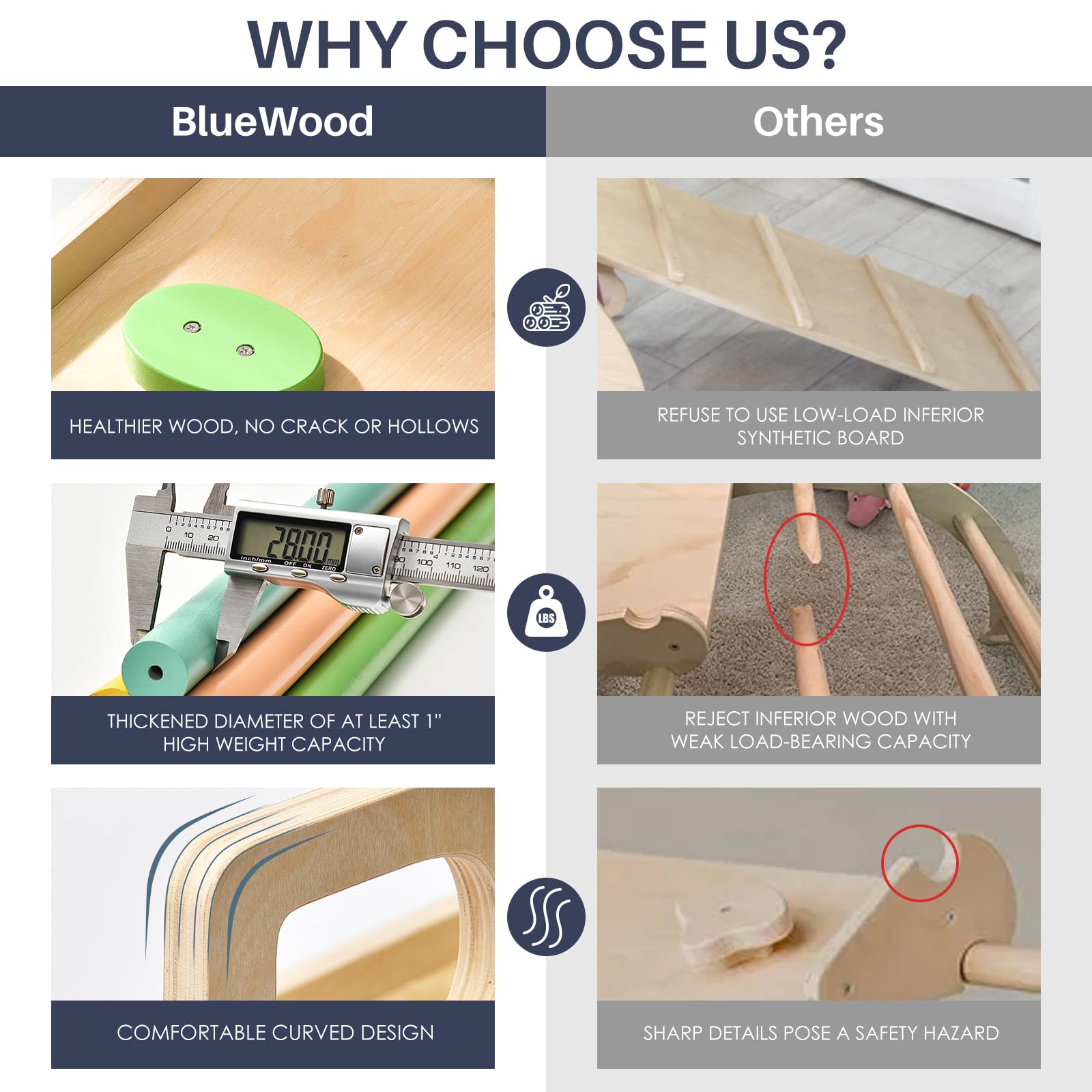 BlueWood 3-in-1 Montessori Indoor Kletterdreieck Set - Regenbogen