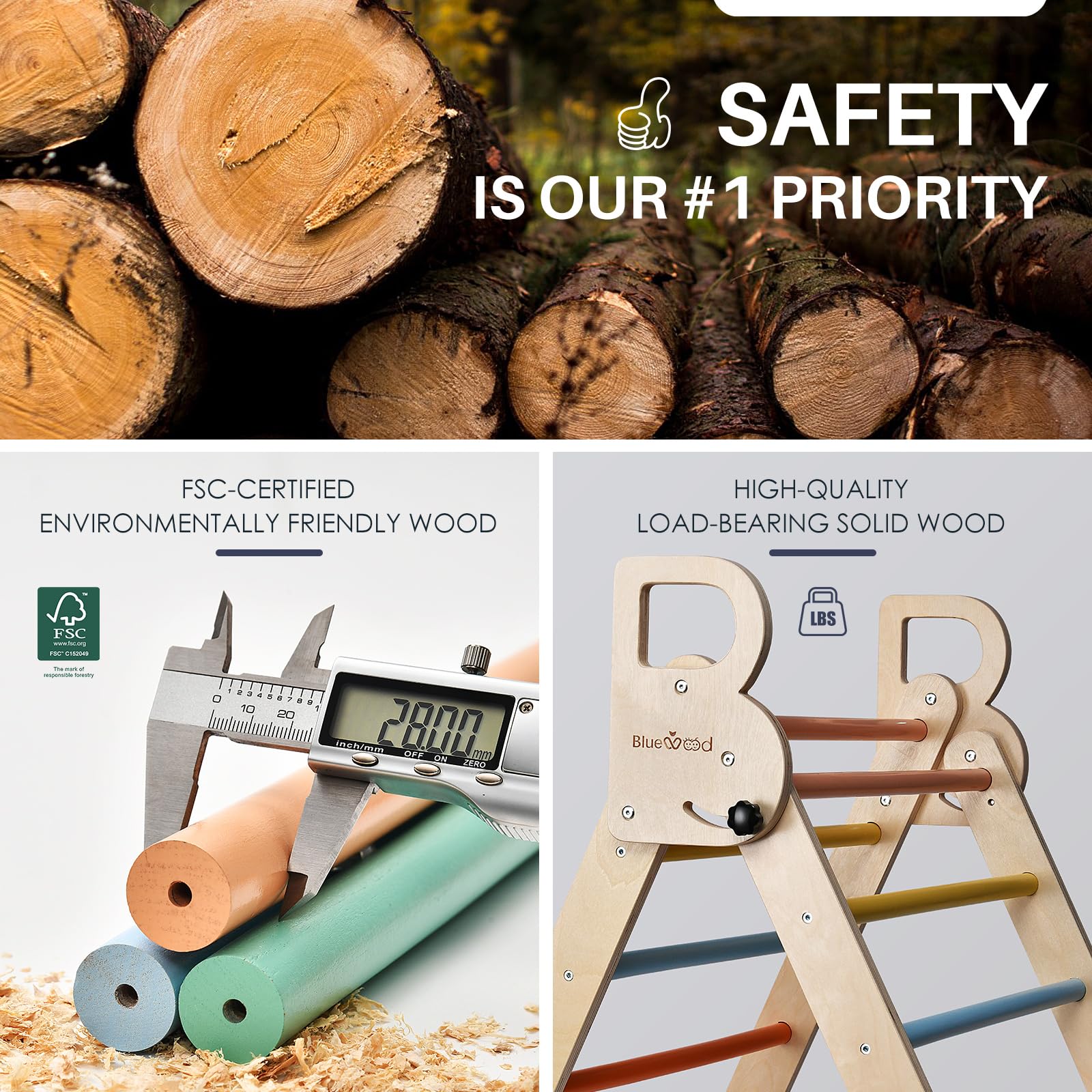 - Sichere und natürliche Materialien: Gefertigt aus 100 % FSC-zertifiziertem Massivholz, erfüllt dieses Kletterspielzeug die strengen Sicherheitsstandards ASTM F963-17 und CPSIA.