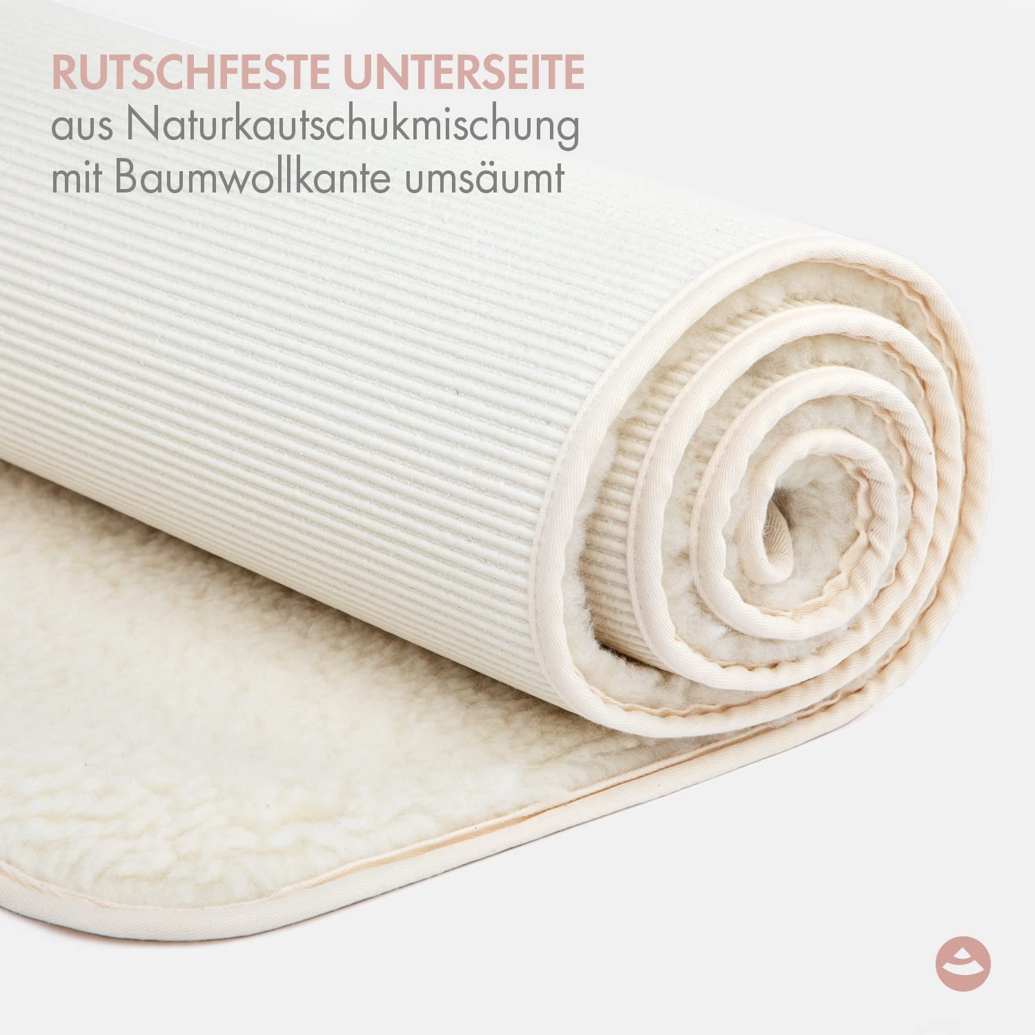 - Material Oberseite: 100% reine Schafschurwolle (Hochflor) mit einer Dichte von 1200 g/m².