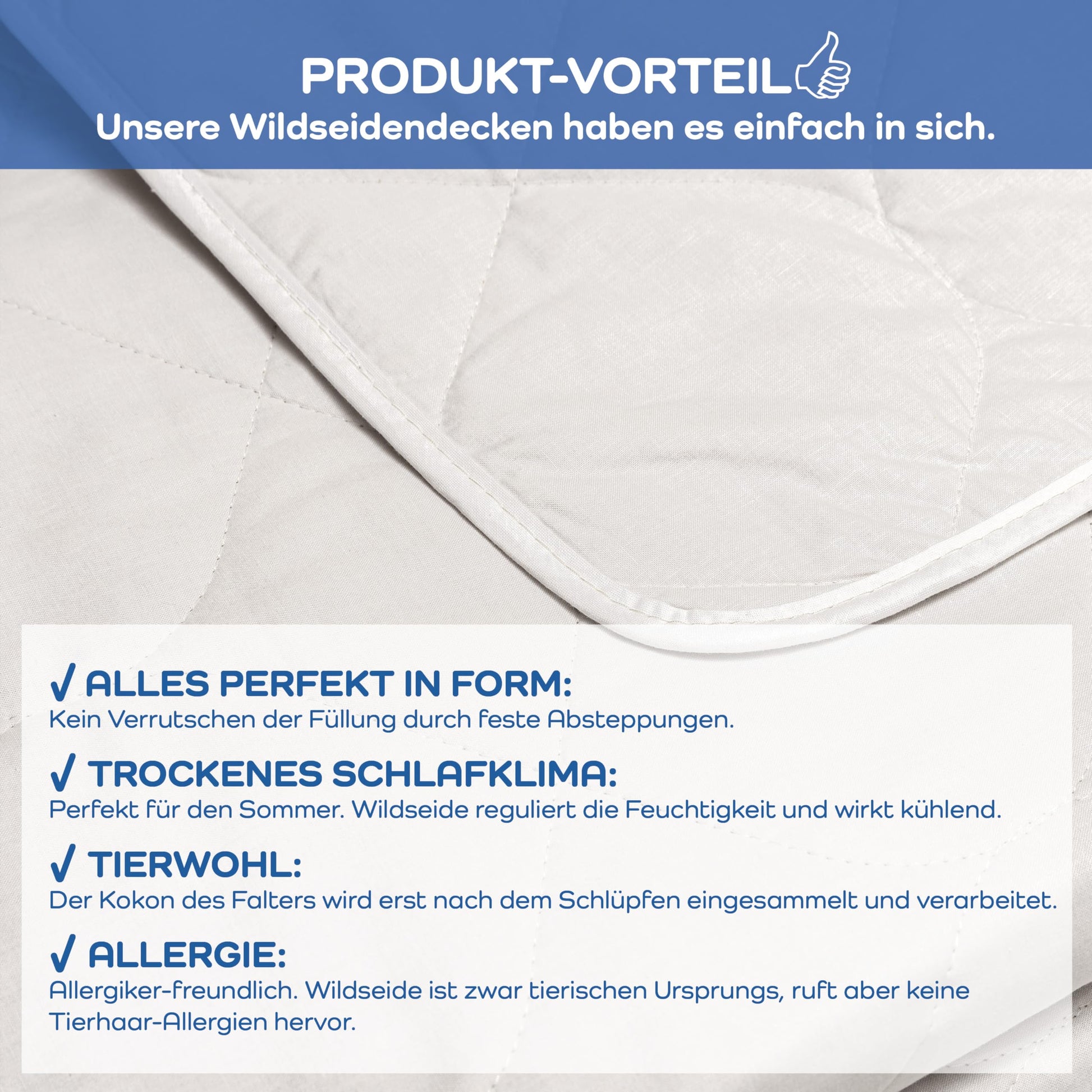- Füllung: 100% reine Tussah-Wildseide für ein leichtes und geschmeidiges Gefühl.