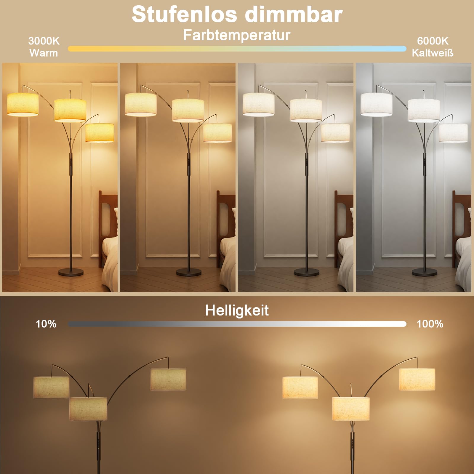 Bogen Stehlampe LED dimmbar Fernbedienung – Beige Stoffschirm