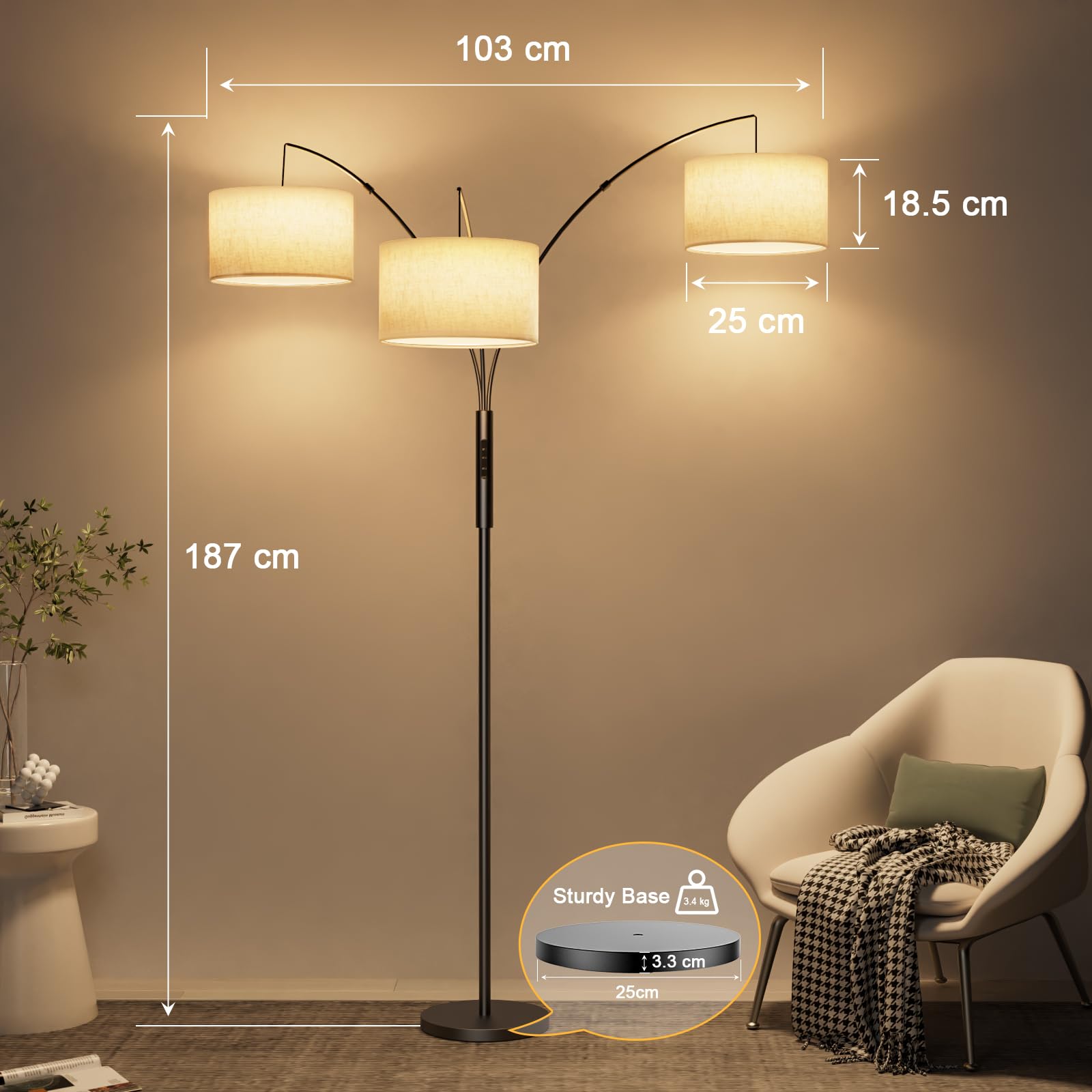 Diese elegante Bogenlampe mit drei Lichtquellen ist die ideale Lösung, um Ihr Wohn- oder Schlafzimmer stilvoll und flexibel auszuleuchten. Mit ihrem modernen Design und der anpassbaren Beleuchtung fügt sie sich nahtlos in jedes Ambiente ein.