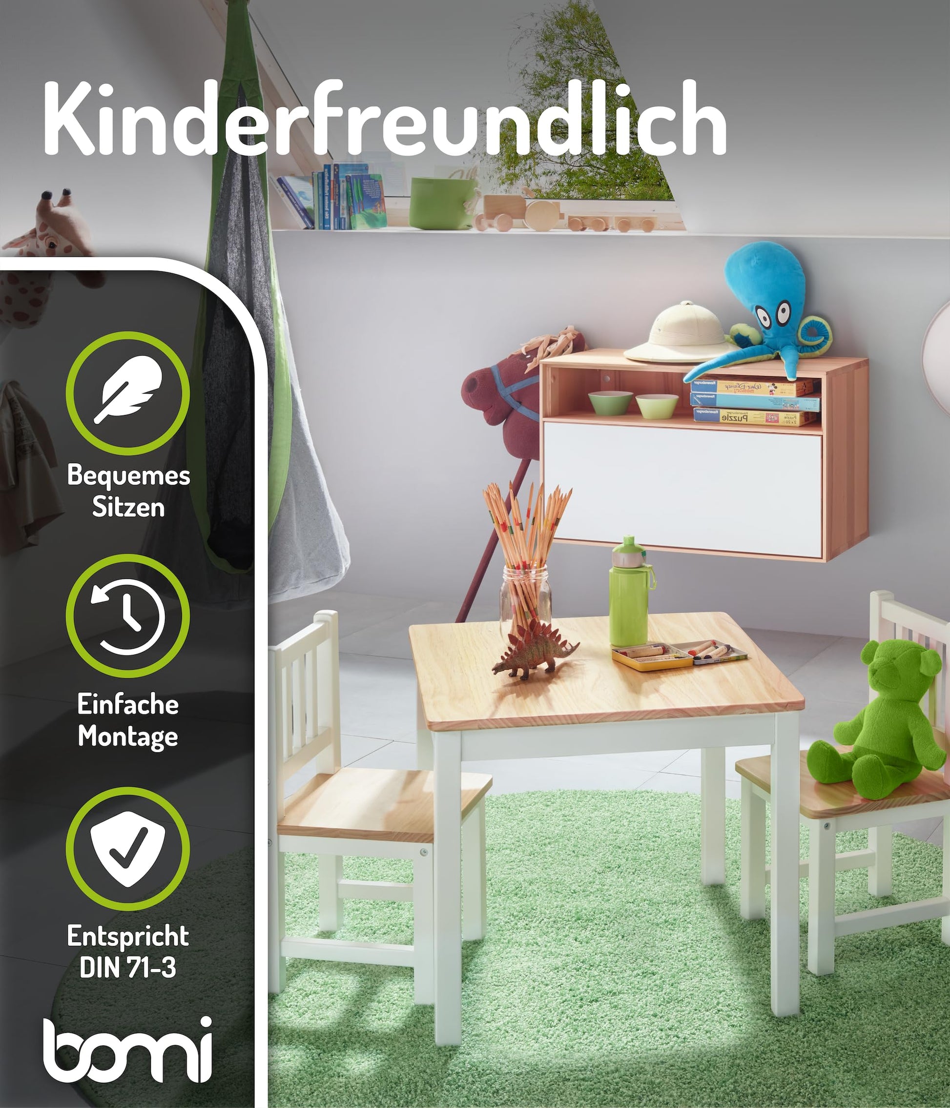 Ein zeitloses und multifunktionales Möbelset, das über Jahre hinweg Freude bereitet und in jedes Kinderzimmer passt.