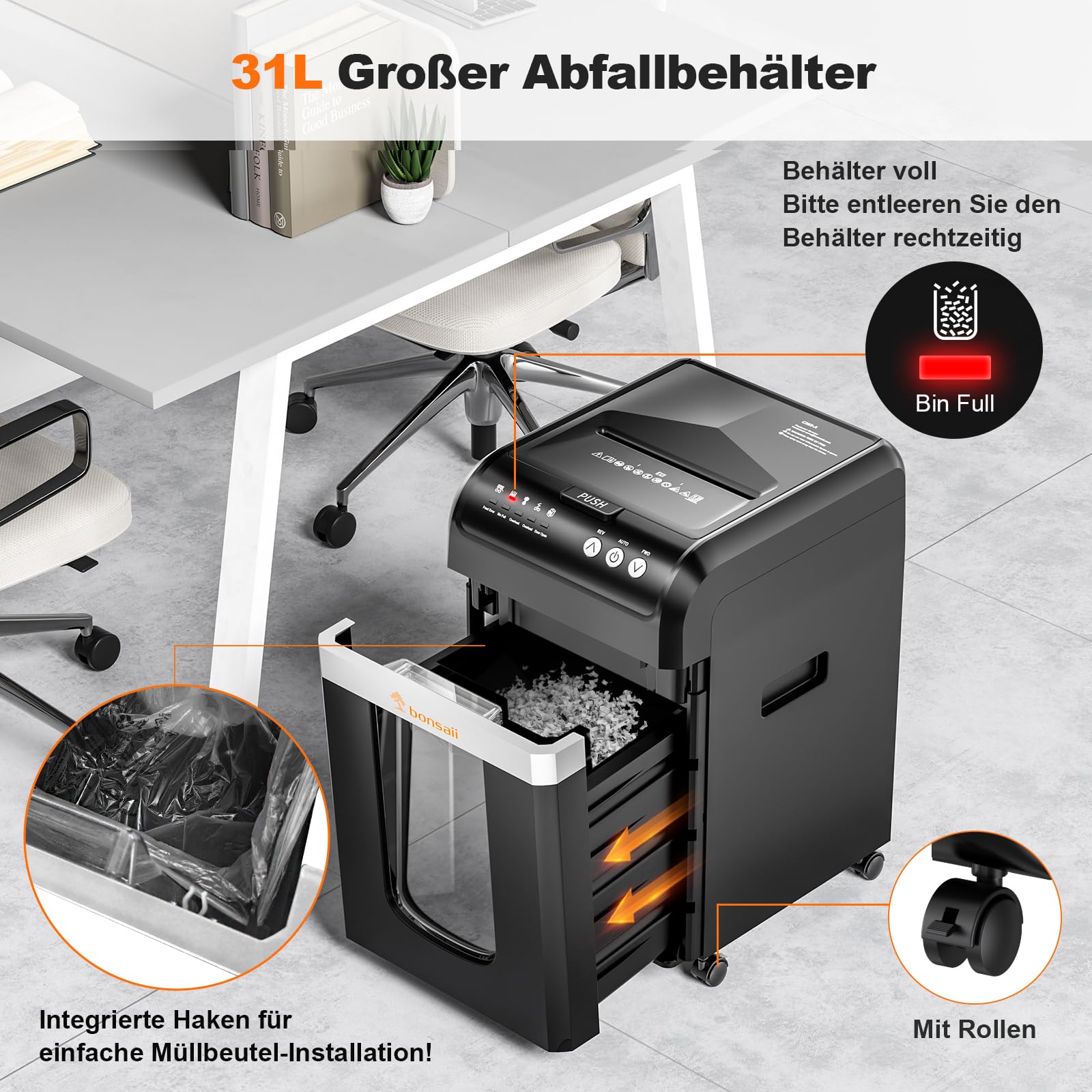 Bonsaii C283 Aktenvernichter – 200 Blatt Auto-Einzug P-4 Mikroschnitt