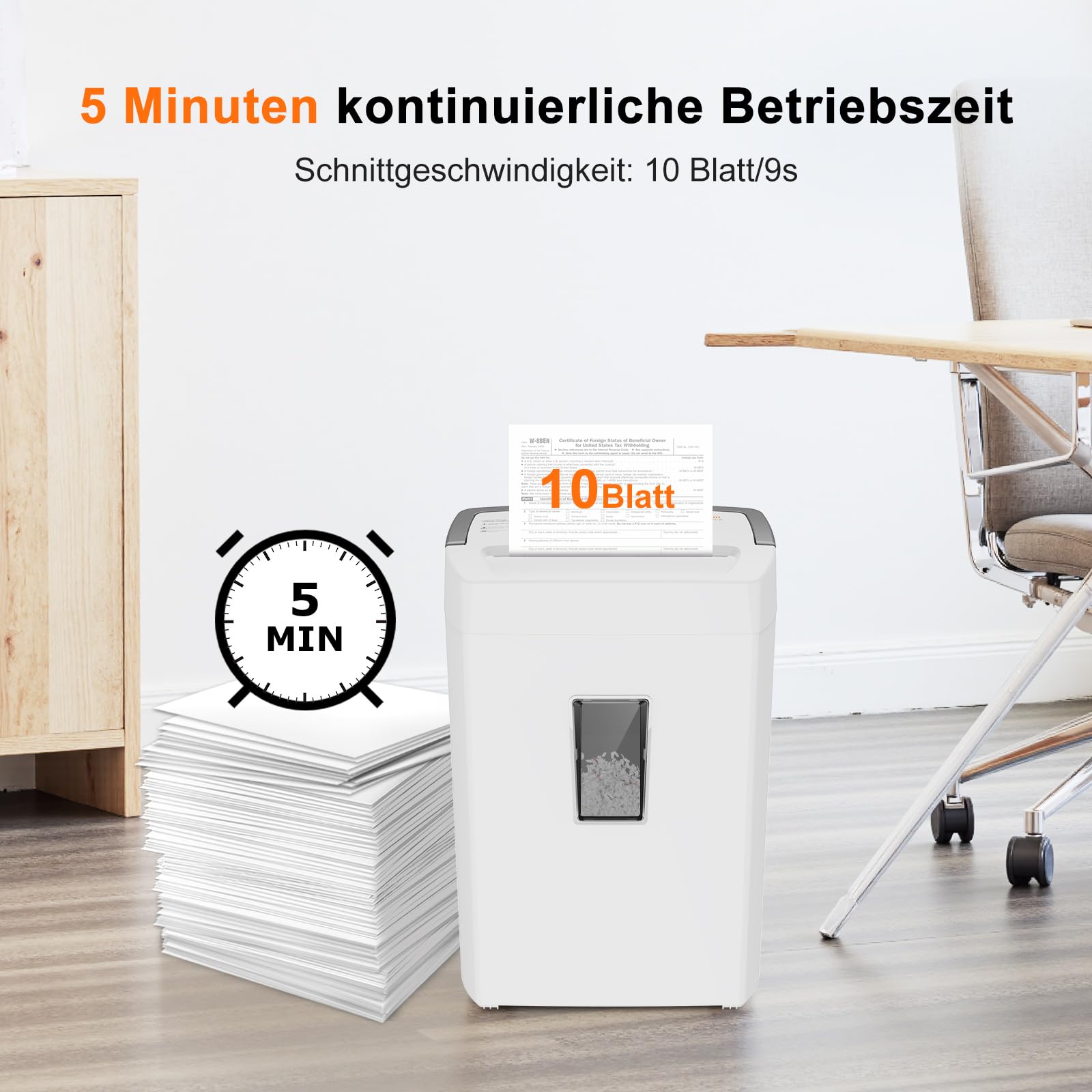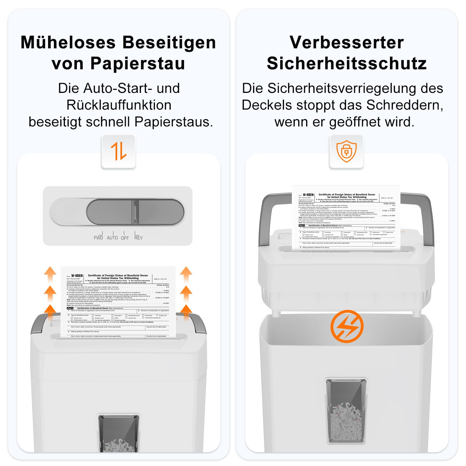 - Hohe Sicherheitsstufe P4: Zerkleinert Dokumente, Kreditkarten und sogar Büroklammern in winzige 5 x 12 mm grosse Partikel, um Ihre Daten zuverlässig zu schützen.