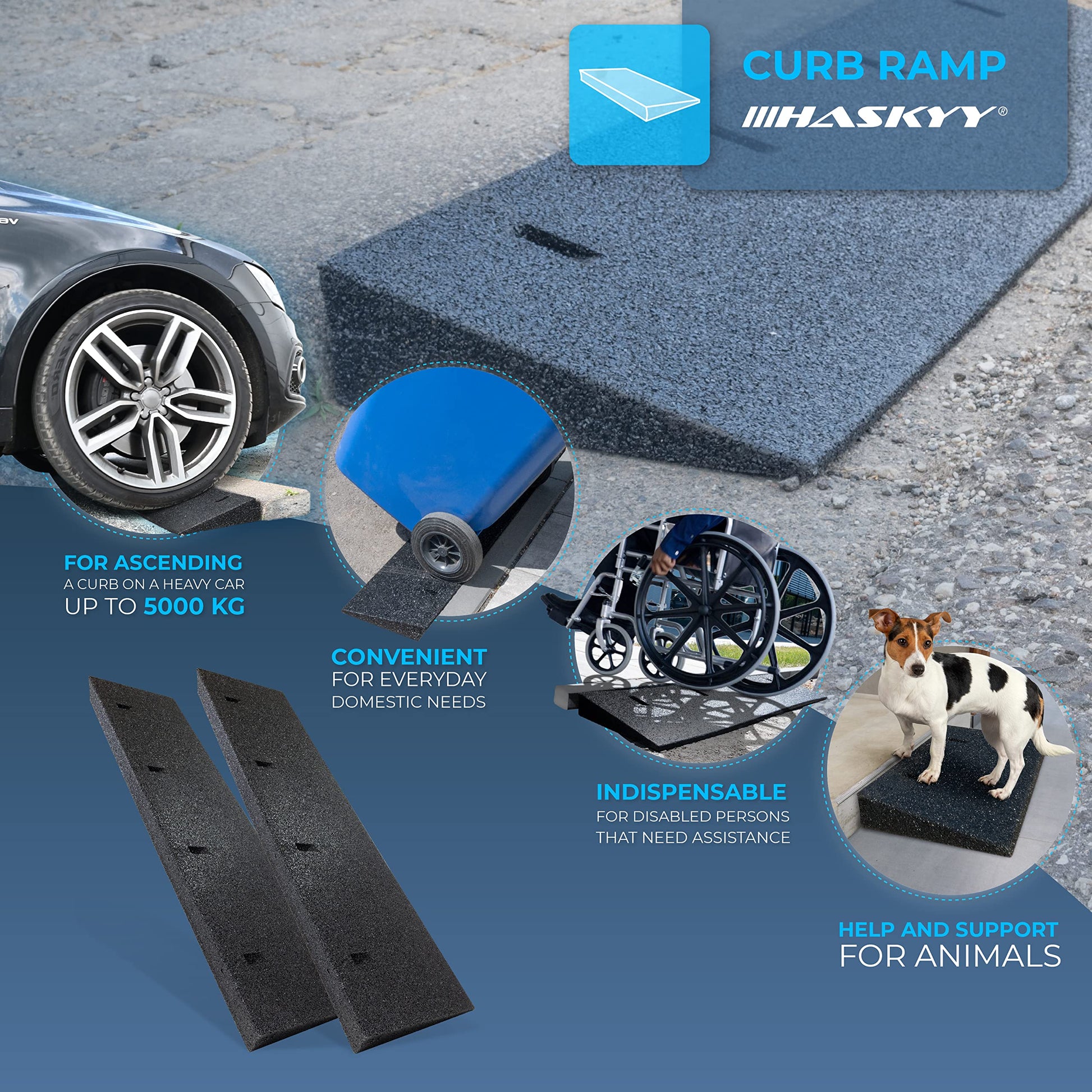 Dieses Set aus zwei robusten Auffahrrampen ist die ideale Lösung, um Höhenunterschiede wie Randsteine, Türschwellen oder Absätze mühelos und sicher zu überwinden. Gefertigt aus hochverdichtetem Gummigranulat, bieten sie Stabilität und Langlebigkeit in jeder Situation.