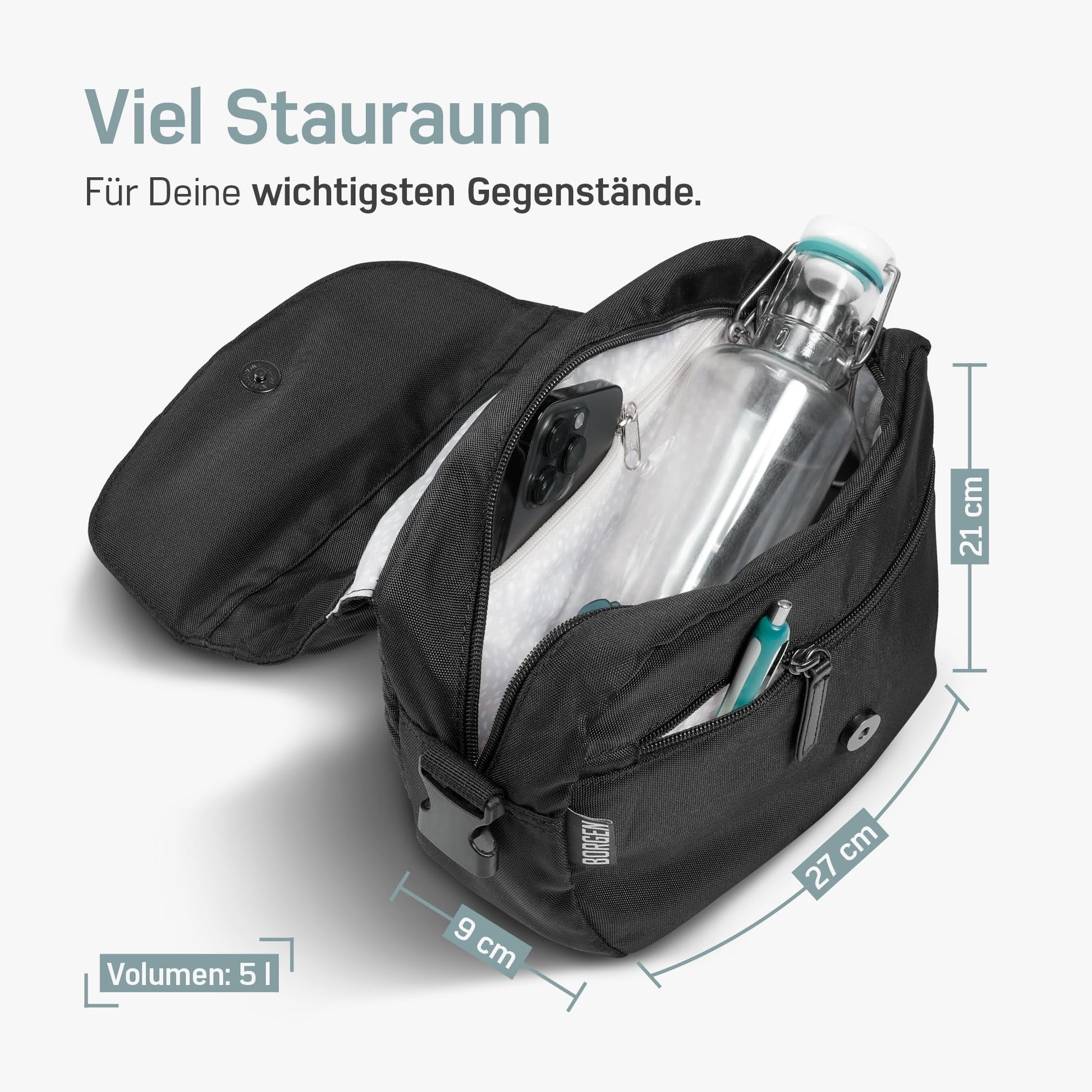 - Grosszügiger Stauraum: Mit 5 Litern Volumen und einem zusätzlichen Aussenfach mit Reissverschluss bietet die Tasche viel Platz für Ihre Wertsachen und Proviant.
