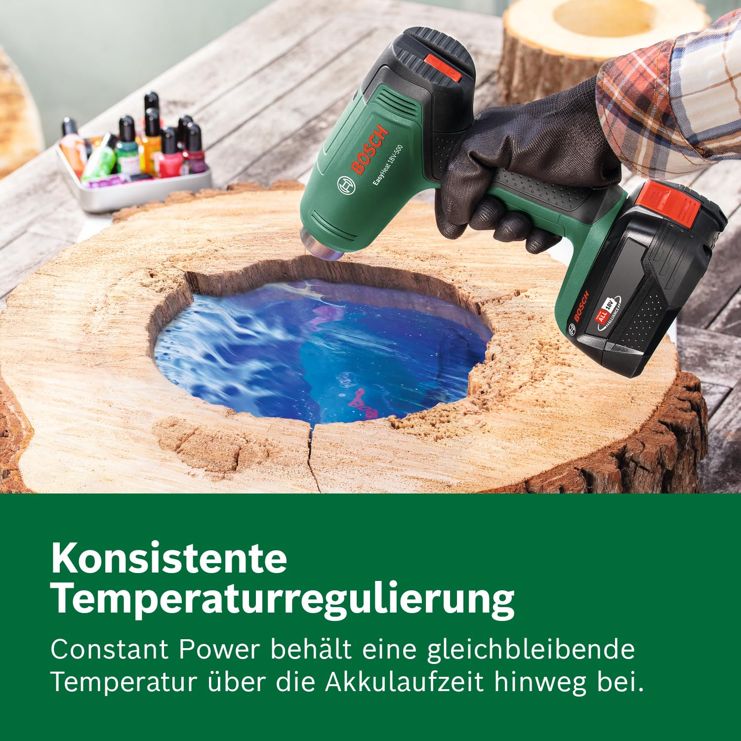 Das Akku-Heissluftgebläse EasyHeat 18V-500 ist der ideale Begleiter für Heimwerker, die flexible und schnelle Lösungen benötigen. Dank seines kabellosen Designs erledigen Sie diverse Erhitzungsarbeiten mühelos, egal ob in der Werkstatt oder unterwegs.