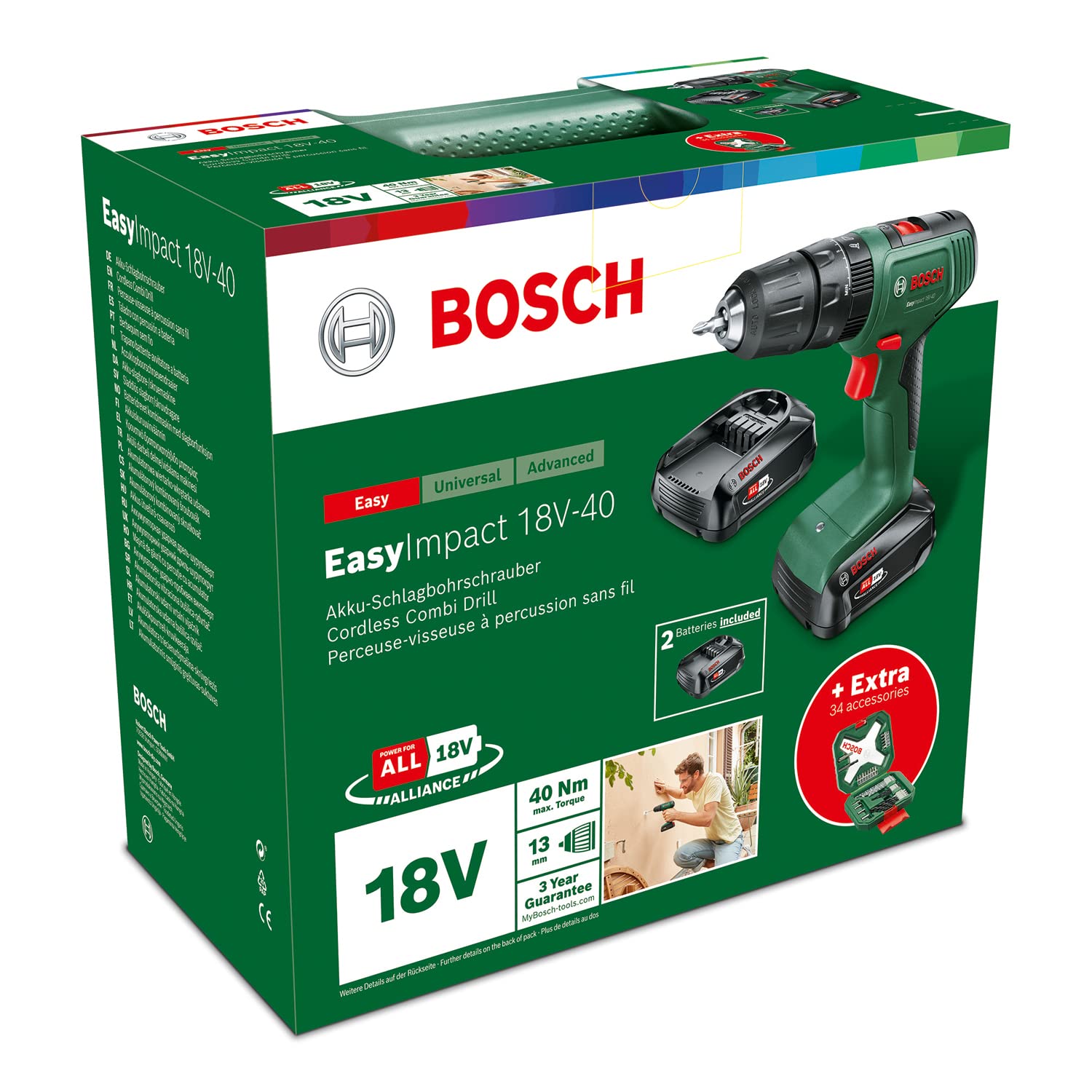 Der EasyImpact 18V-40 ist Ihr zuverlässiger und vielseitiger Akku-Schlagbohrschrauber für eine Vielzahl von Projekten in Ihrem Zuhause. Er kombiniert Leistung und einfache Handhabung in einem kompakten Gerät und wird als komplettes Set für den sofortigen Start geliefert.