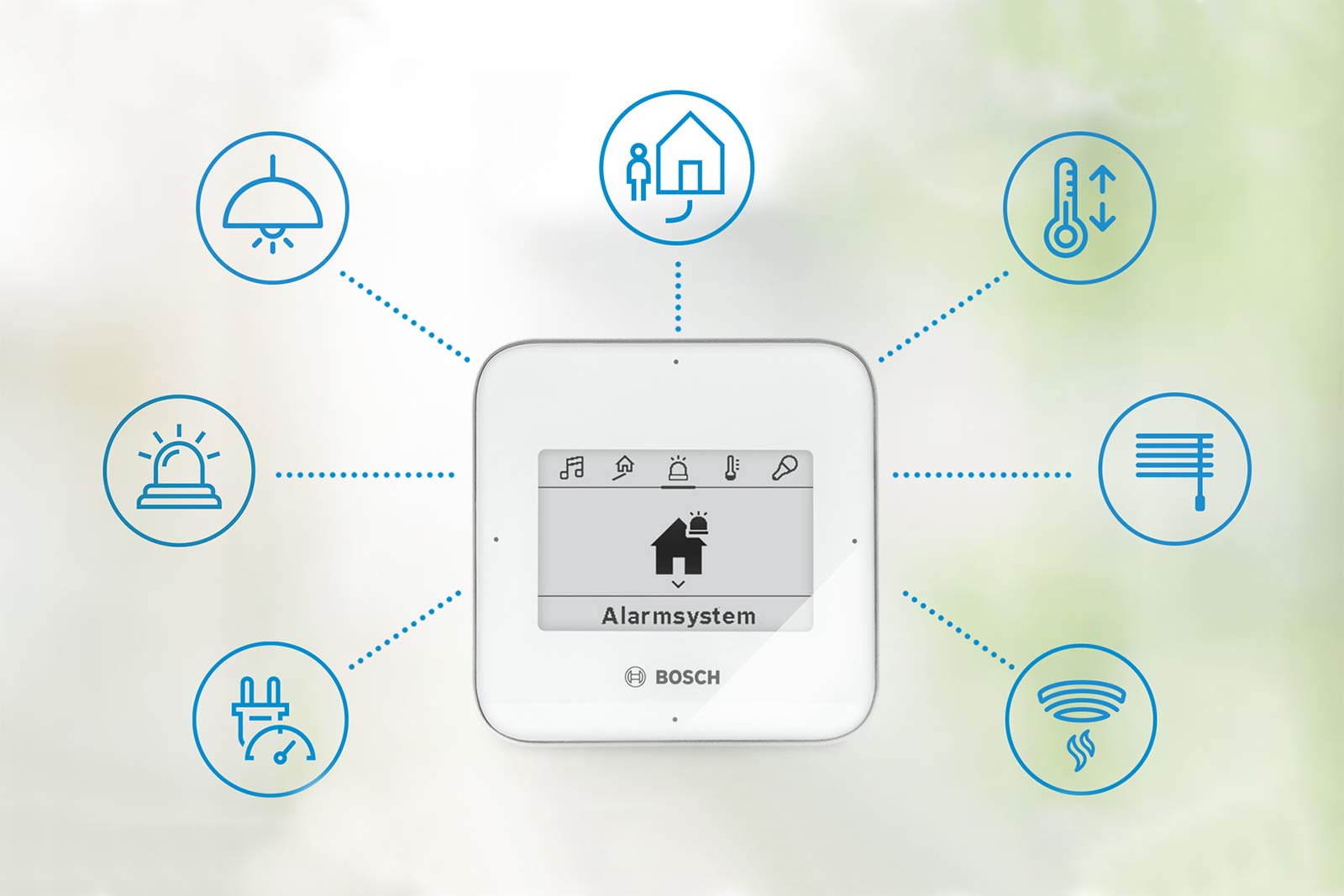 Der Hauptvorteil ist die bequeme und zentrale Steuerung Ihres gesamten Bosch Smart Home Systems, auch ohne Smartphone. Sie haben die Kontrolle über Lichter, Heizung oder die Alarmfunktion immer griffbereit, wo Sie es gerade benötigen.