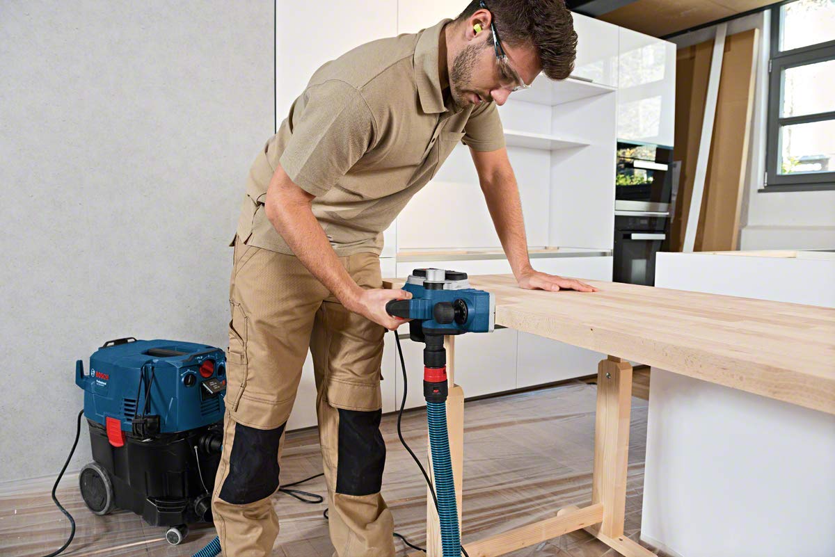 Sehr benutzerfreundlich. Der Spanauswurf kann flexibel für die linke oder rechte Seite eingestellt werden, was den Arbeitskomfort maximiert. Zudem sorgt die effiziente Staubabsaugung für eine saubere Arbeitsfläche und ist mit dem Bosch Click & Clean-System kompatibel.