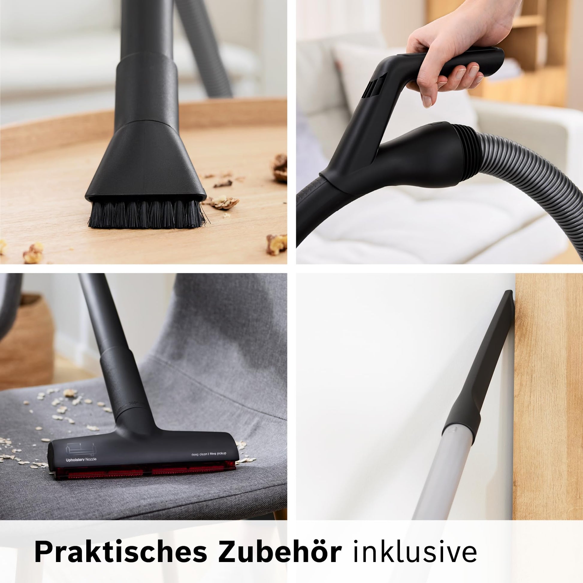 - Umfangreiches Zubehör: Inklusive umschaltbarer Rollendüse, XXL-Polsterdüse für grosse Flächen, XXL-Fugendüse für enge Spalten und einem sanften Möbelpinsel.