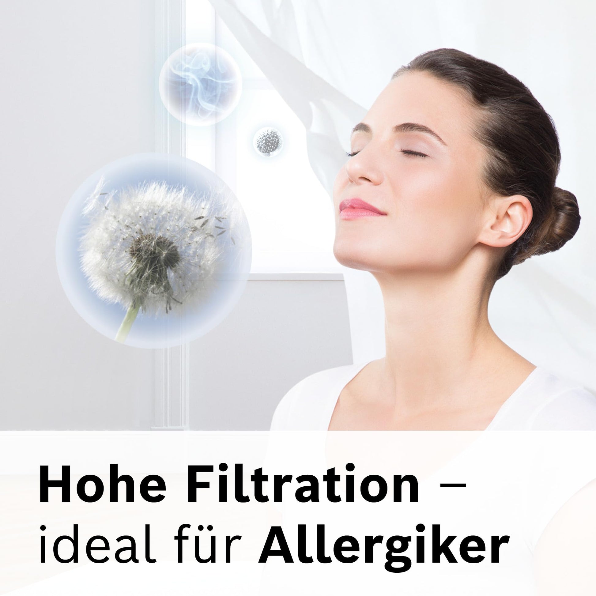 - UltraAllergy Hygienefilter: Der waschbare Filter sorgt durch extrem hohe Filtration für besonders reine Ausblasluft – eine Wohltat für Allergiker.