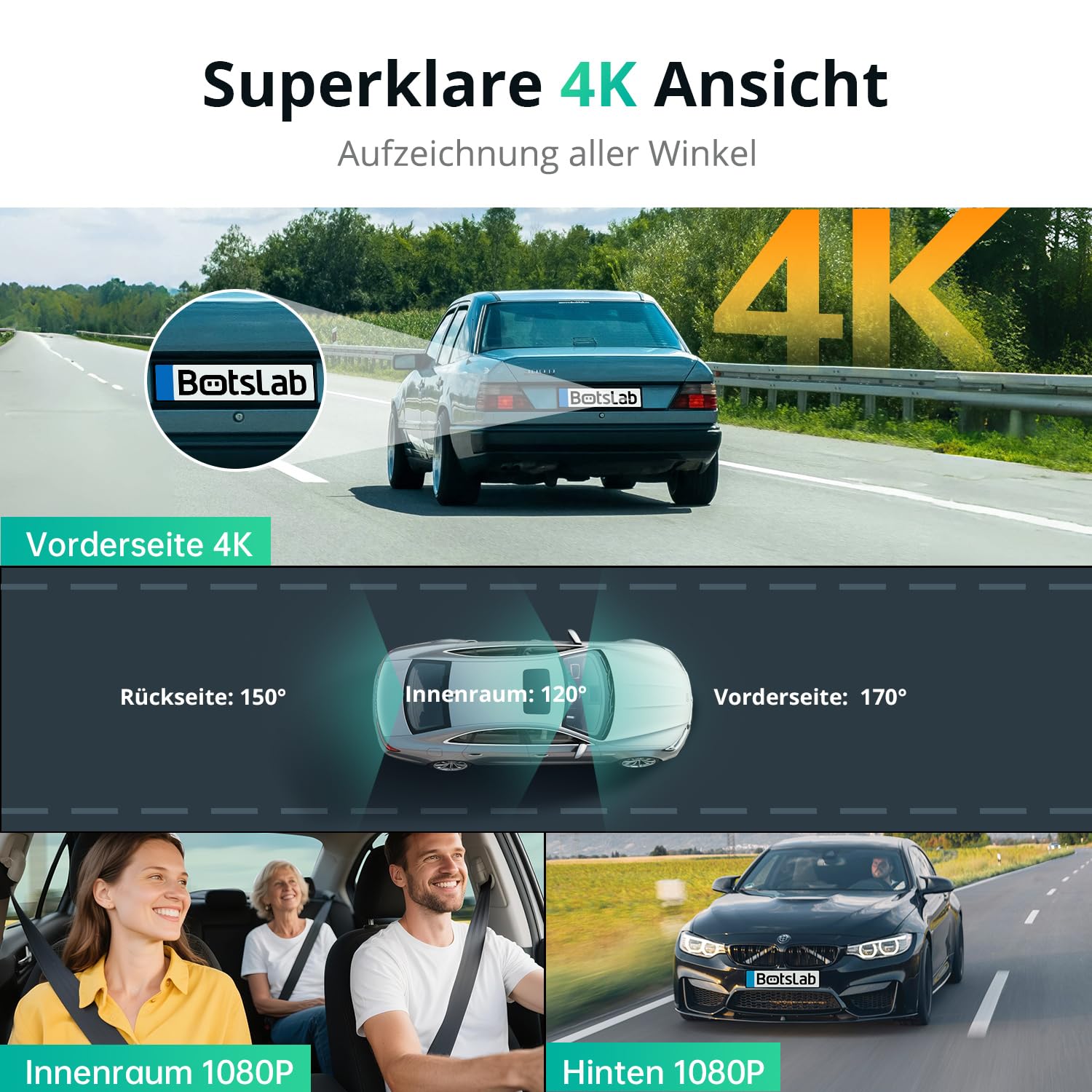 BOTSLAB 4K 3-Kanal Dashcam – GPS, WiFi, 128GB SD-Karte