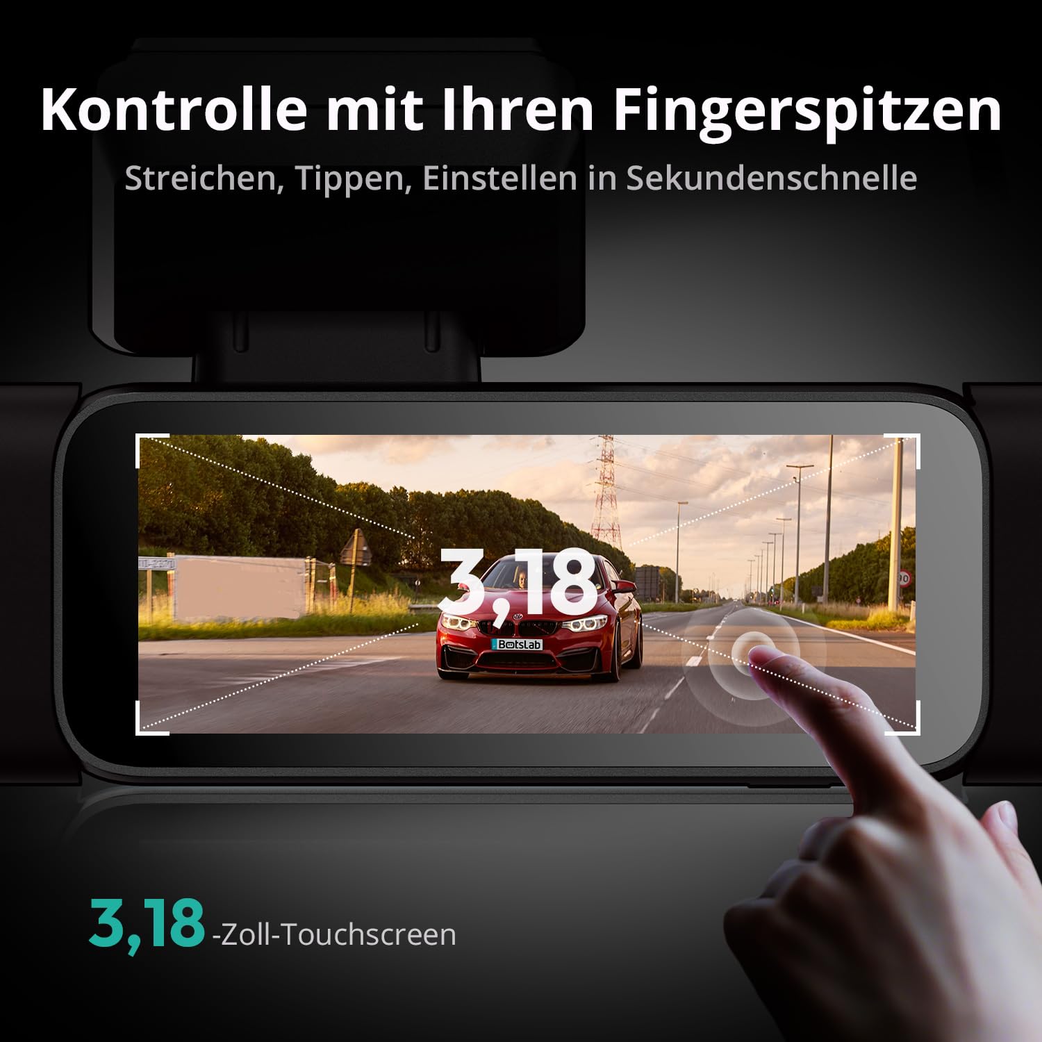 Die Bedienung ist denkbar einfach. Steuern Sie wichtige Funktionen wie das Starten einer Notfallaufnahme bequem per englischem Sprachbefehl, ohne die Hände vom Lenkrad zu nehmen. Der grosse Touchscreen ermöglicht zudem eine intuitive und schnelle Anpassung aller Einstellungen direkt am Gerät.