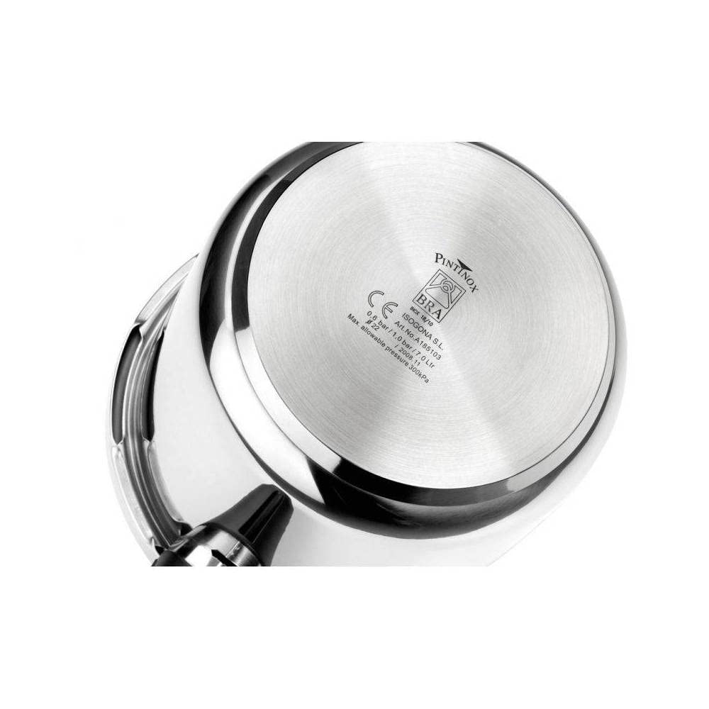 Der Topf bietet maximale Sicherheit gemäss CE-Vorschriften. Er verfügt über vier Drucksicherheitsmechanismen, inklusive eines Öffnungssperrsystems, das verhindert, dass der Deckel geöffnet wird, solange Druck im Inneren herrscht.