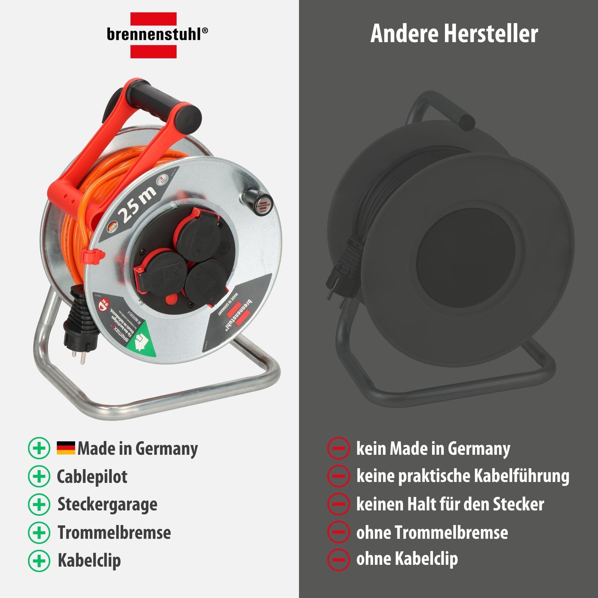 - Innovativer "cablepilot" Tragegriff: Sorgt für eine perfekte Kabelführung beim Auf- und Abrollen, ermöglicht den freihändigen Transport und das praktische Aufhängen der Trommel.