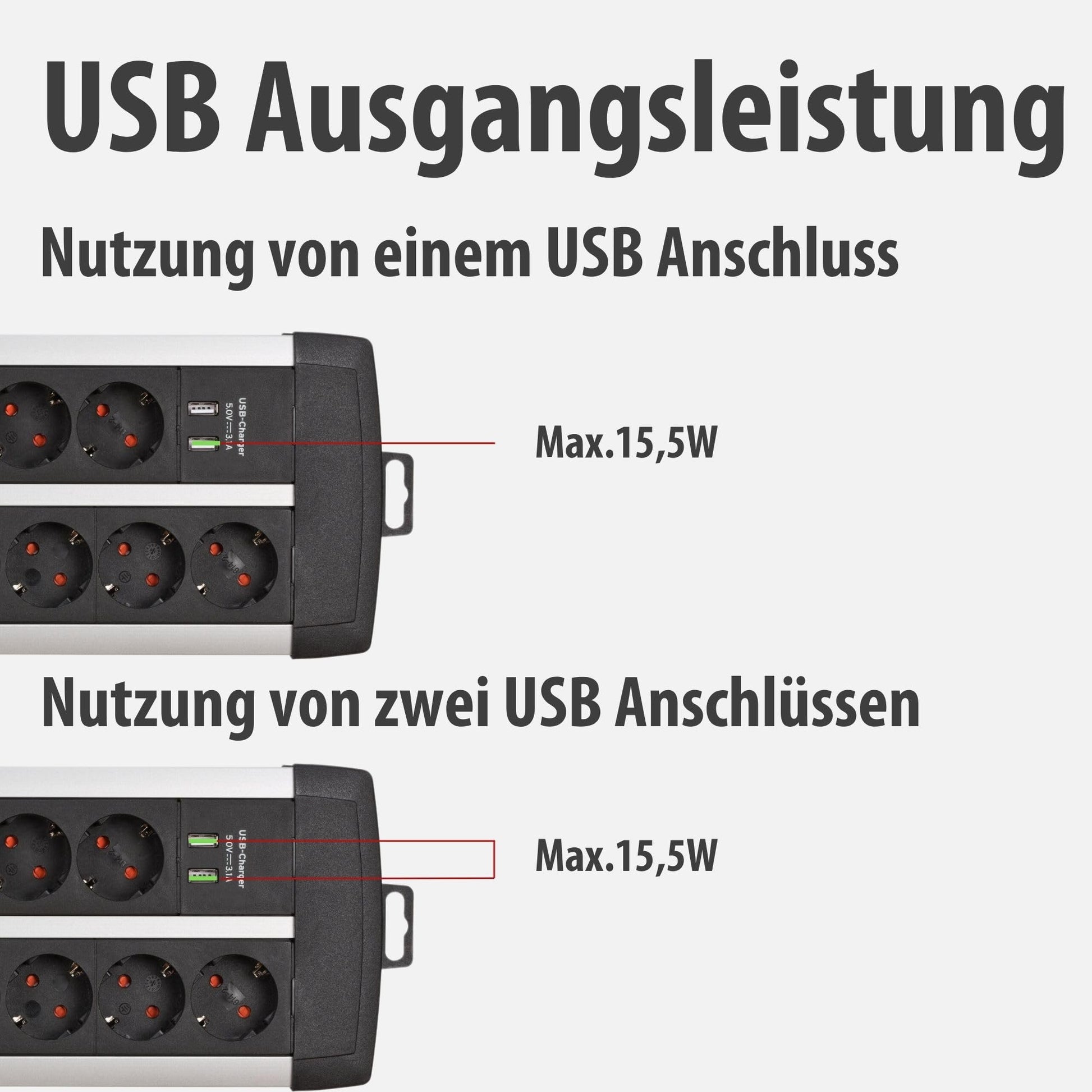 - USB-Ladeleistung: 5V / 3.10A (15.5W)