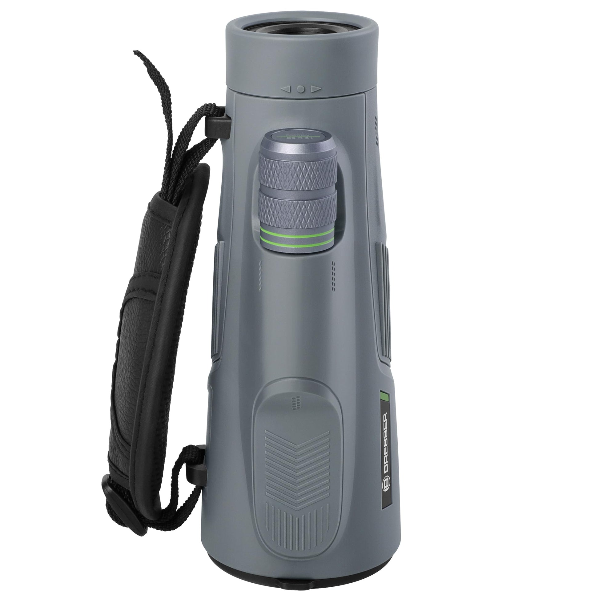 Auch für Brillenträger ist das Monokular bestens geeignet: Die Twist-up-Augenmuschel lässt sich einfach justieren, um den optimalen Augenabstand herzustellen. Dank der griffigen Gummiarmierung und der breiten Handschlaufe liegt die Optik stets sicher in der Hand. Zudem ist sie für jedes Wetter gewappnet: Das wasserdichte Gehäuse schützt die Optik zuverlässig vor Regen und die Stickstofffüllung verhindert ein Beschlagen der Linsen von innen bei Temperaturwechseln.