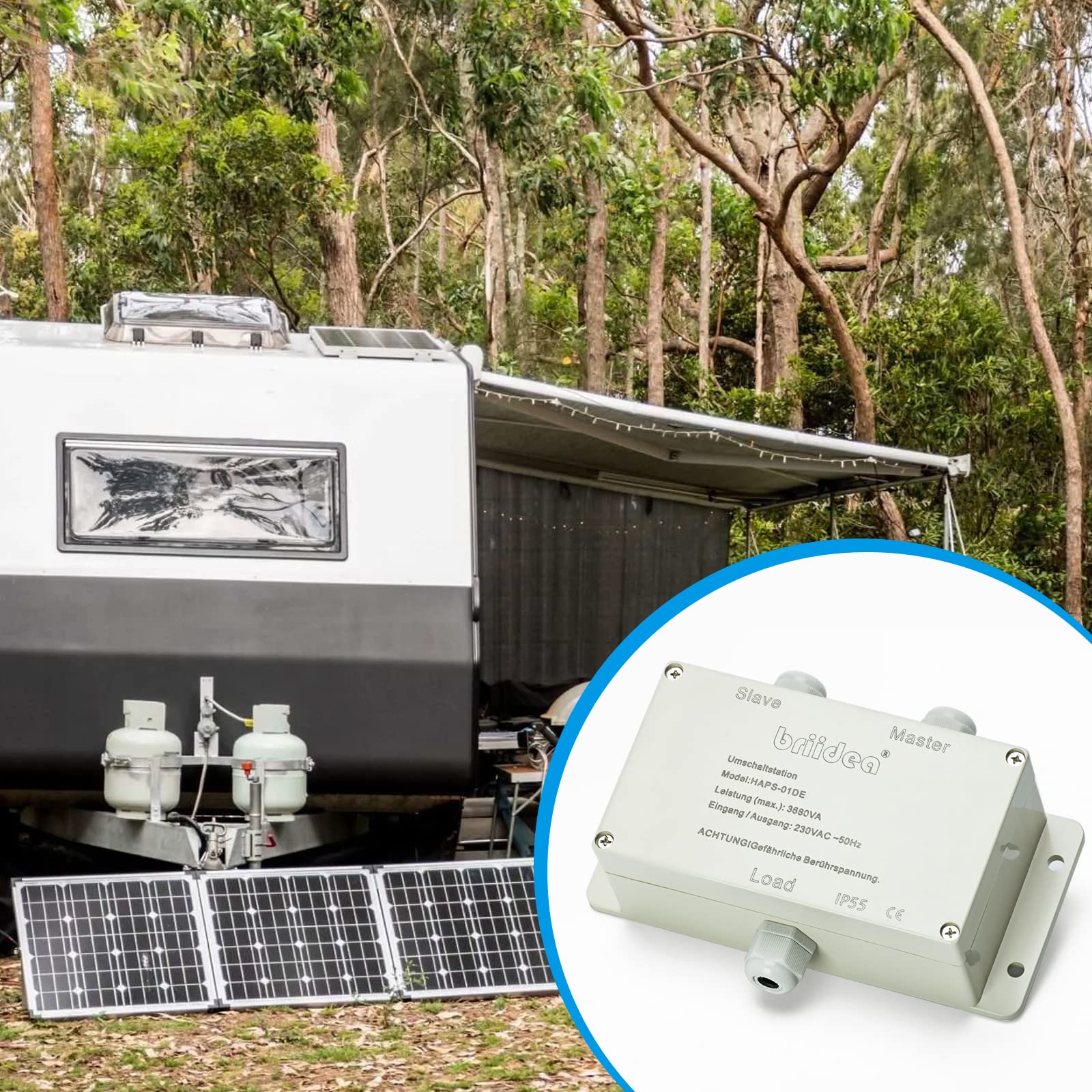 Sie ist vielseitig einsetzbar und perfekt für Situationen, in denen zwischen zwei 230V-Quellen umgeschaltet werden muss. Hauptanwendungen sind Wohnmobile, Camper, Boote und andere Fahrzeuge, aber auch bei Inselsolaranlagen oder in Gartenhäusern sorgt sie für eine zuverlässige und automatische Stromversorgung.