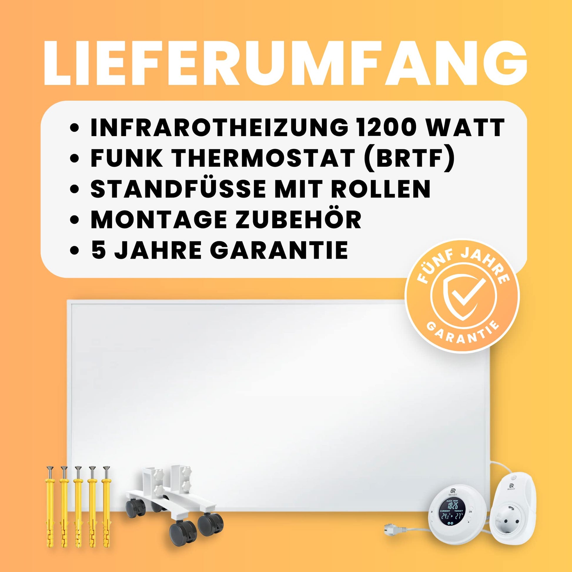 - 1x Bringer Infrarotheizung 1200 W (Masse: 60 x 120 cm)