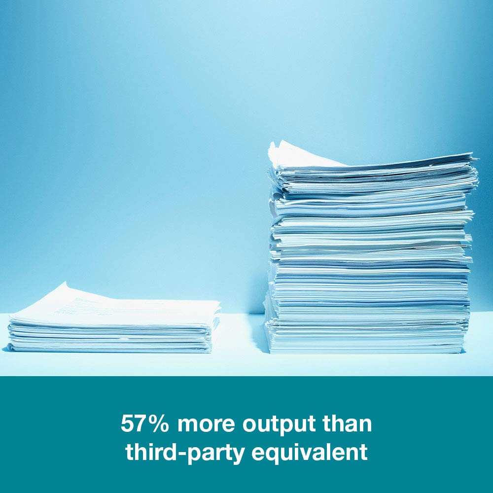 Verlassen Sie sich auf gestochen scharfe Textdokumente und klare, detailreiche Grafiken von der ersten bis zur letzten Seite. Die Verwendung von Originalzubehör garantiert nicht nur eine exzellente Druckqualität, sondern schützt auch die Mechanik Ihres Gerätes und sichert dessen Langlebigkeit. Dank der hohen Seitenreichweite arbeiten Sie effizienter und müssen die Kassette seltener austauschen.