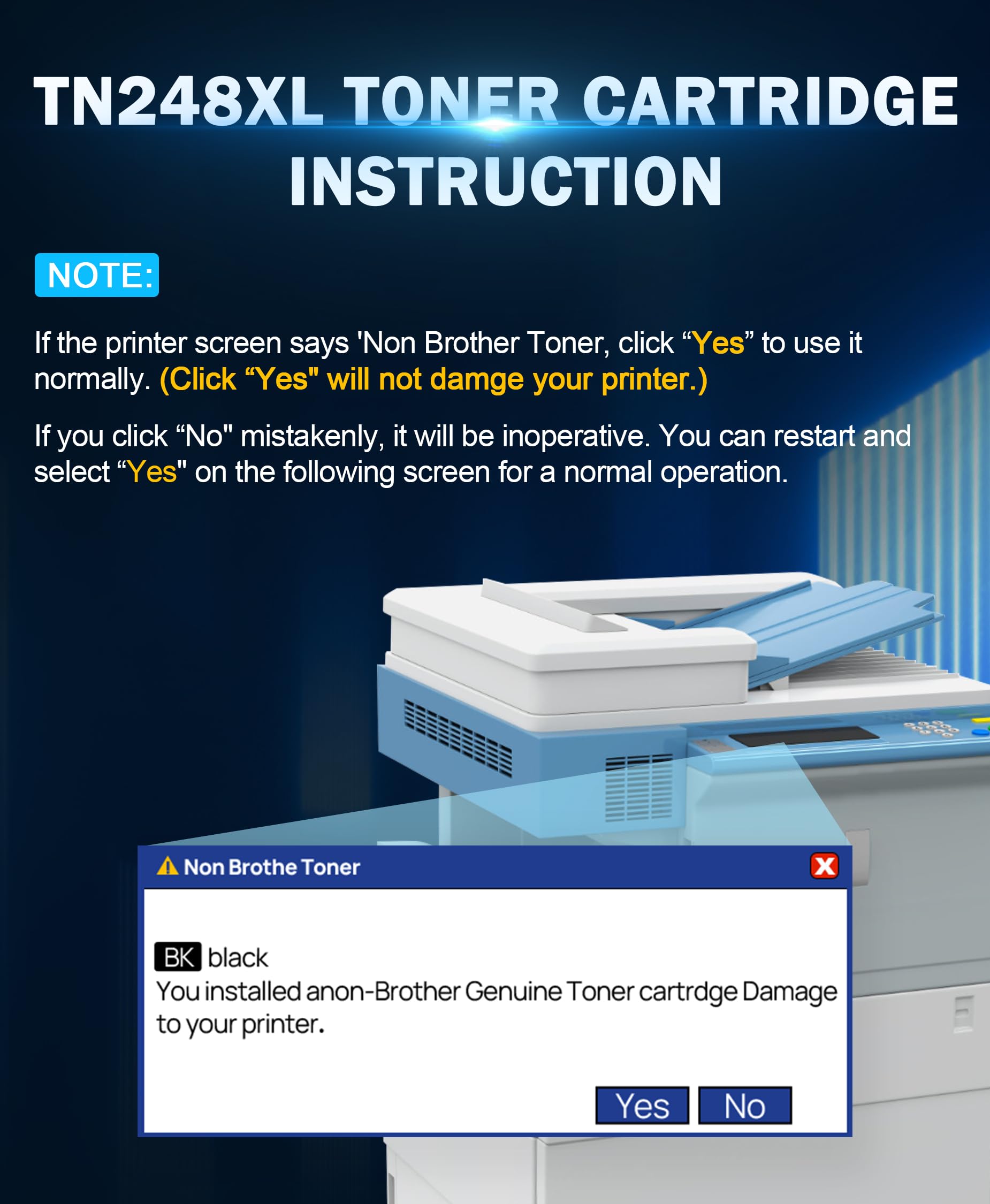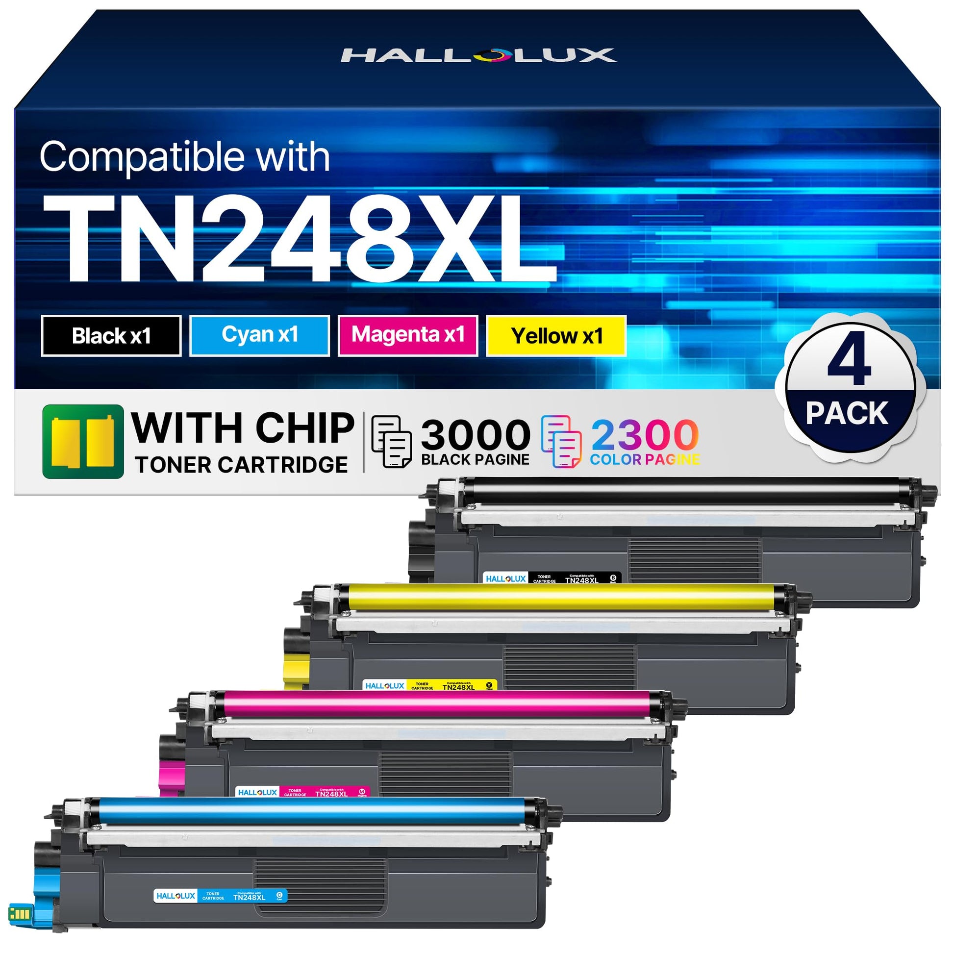 Dieses Set ist vollständig kompatibel mit einer Vielzahl von Brother-Druckern, darunter die beliebten Modelle MFC-L3740CDW, DCP-L3560CDW und HL-L3240CDW sowie weitere Geräte der Brother HL-, DCP- und MFC-Serien, die TN-248 oder TN-248XL Toner verwenden.