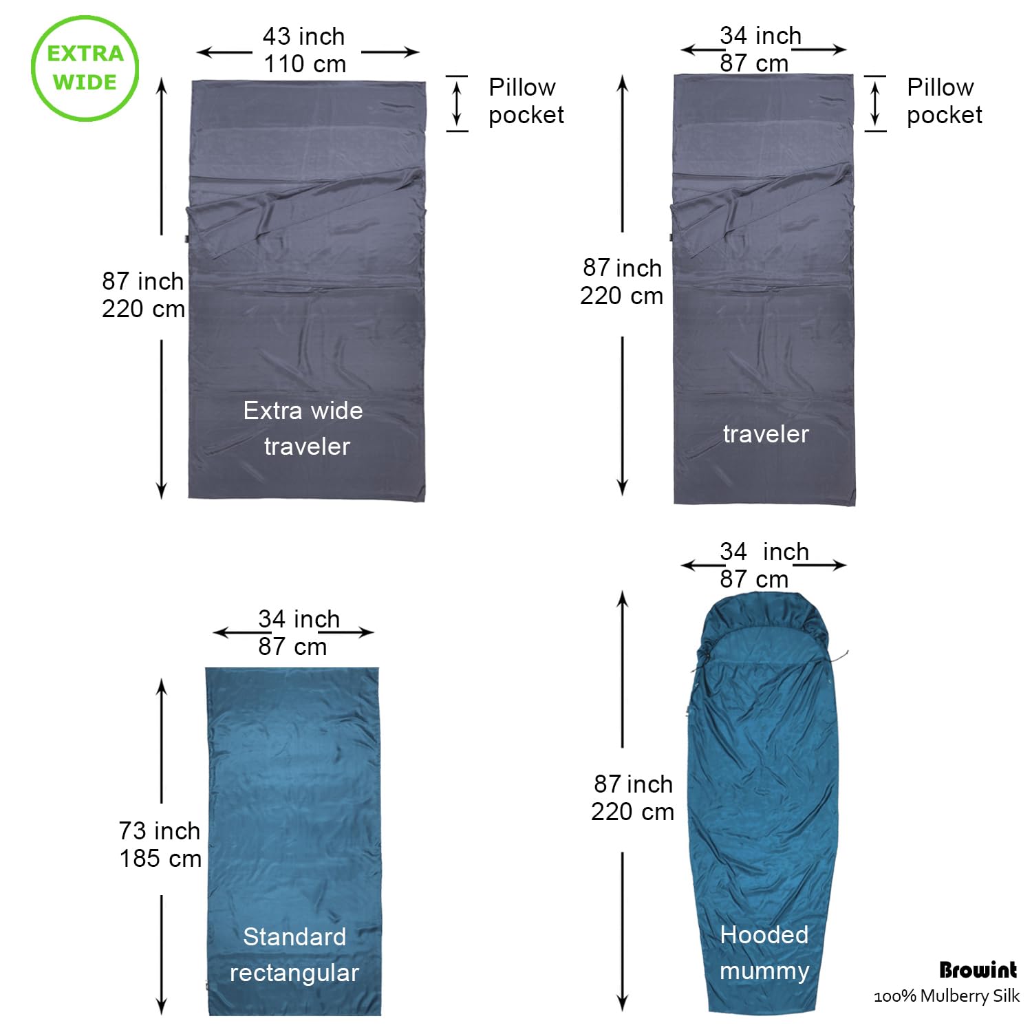 BROWINT Hüttenschlafsack Seide Inlett - Extrabreit 220x110cm