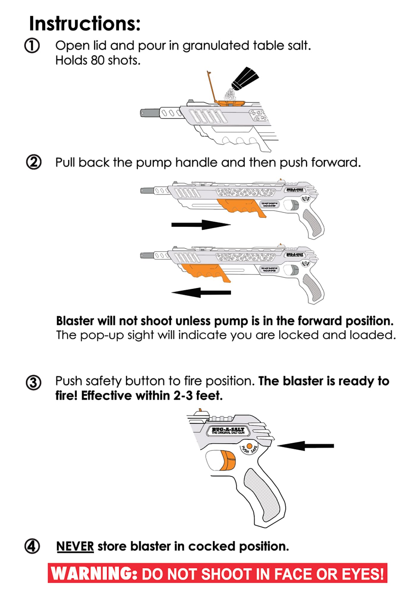 Machen Sie der Insektenplage ein Ende mit der neusten Generation des Salzgewehrs. Die Version 3.0 wurde gezielt für anspruchsvolle Fliegenjäger entwickelt und bringt zahlreiche entscheidende Verbesserungen mit sich.