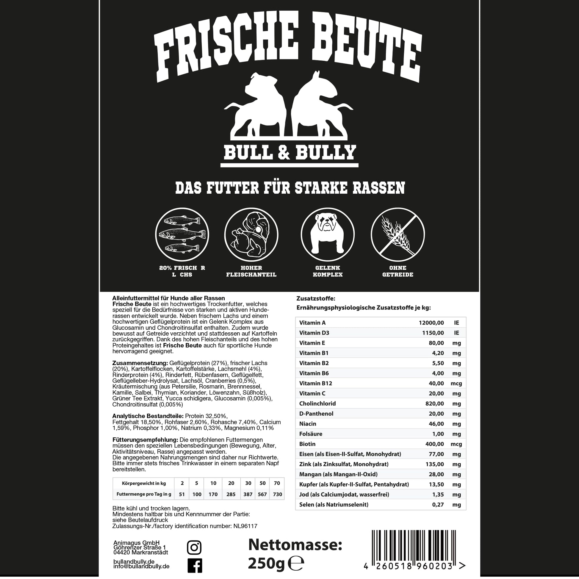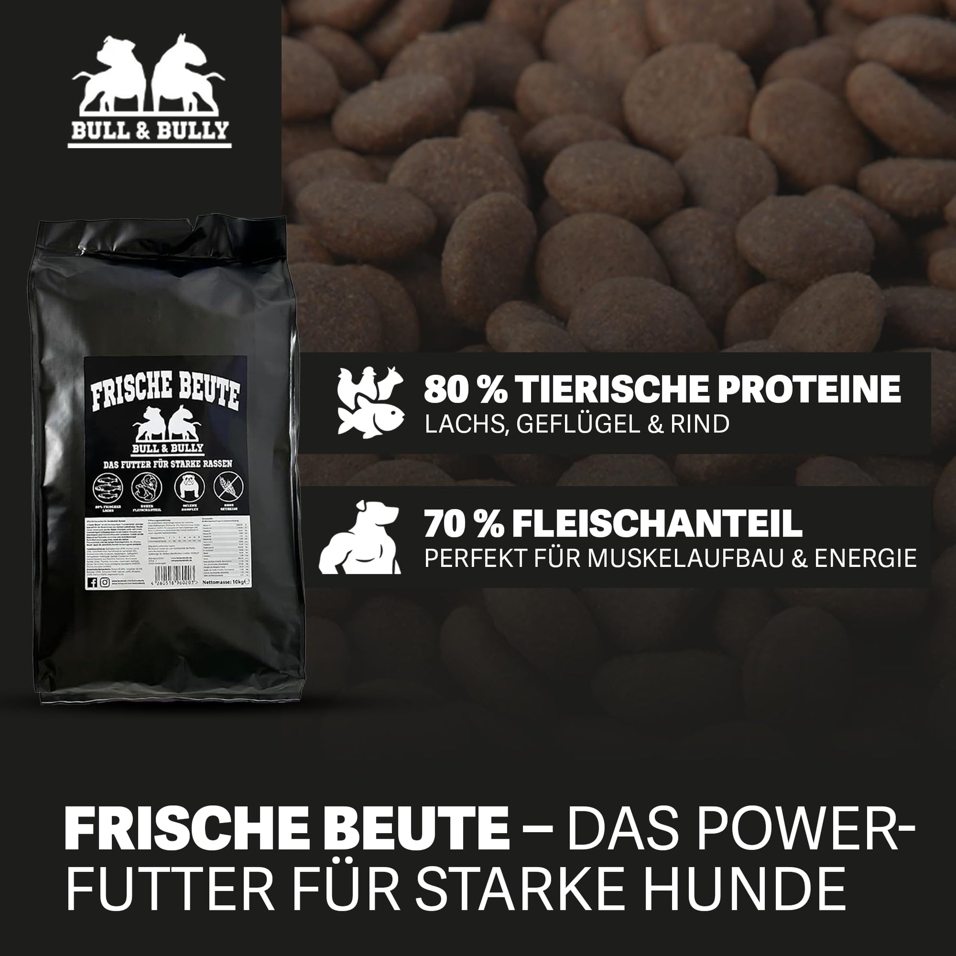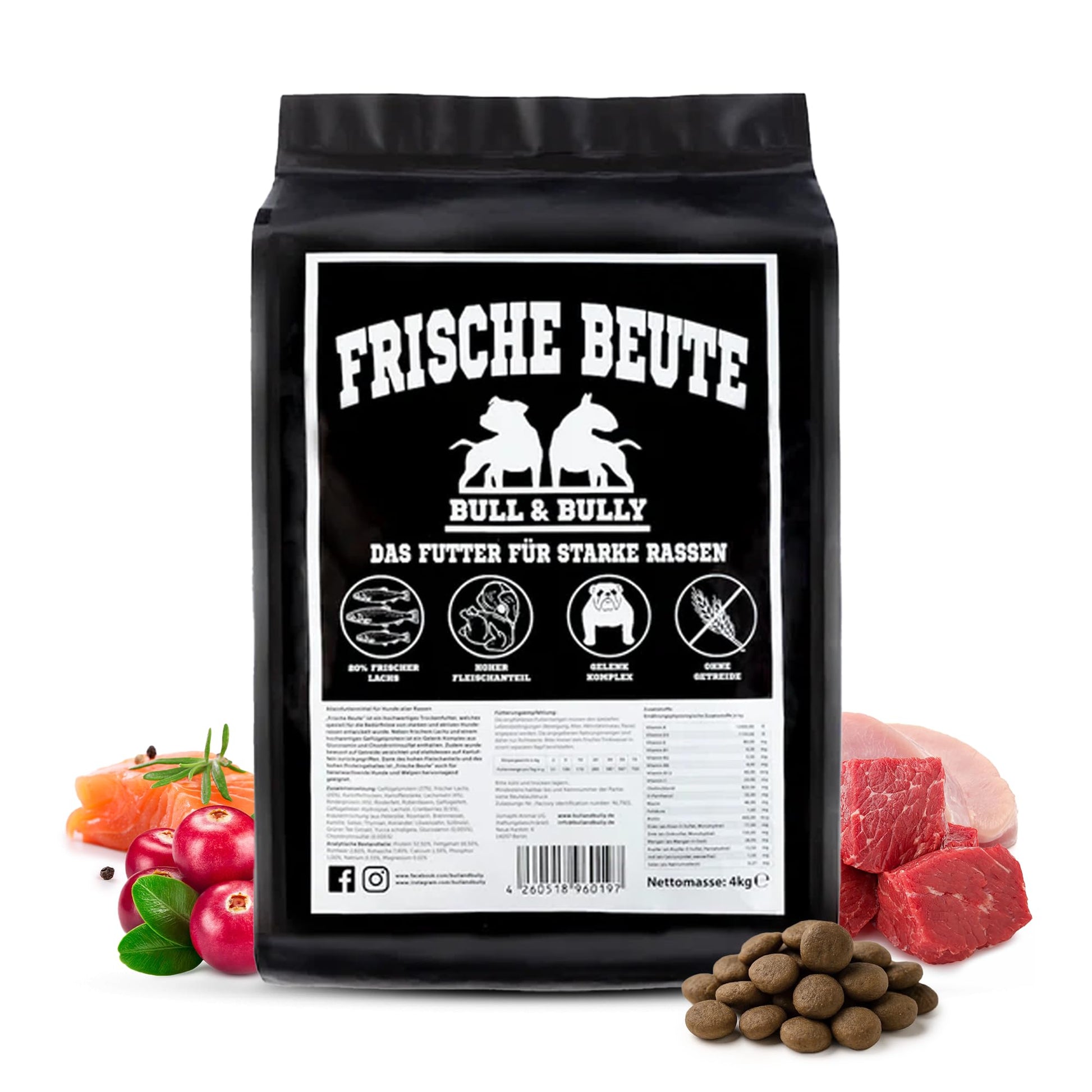 BULL & BULLY Frische Beute Trockenfutter - 10kg Lachs Rind Geflügel