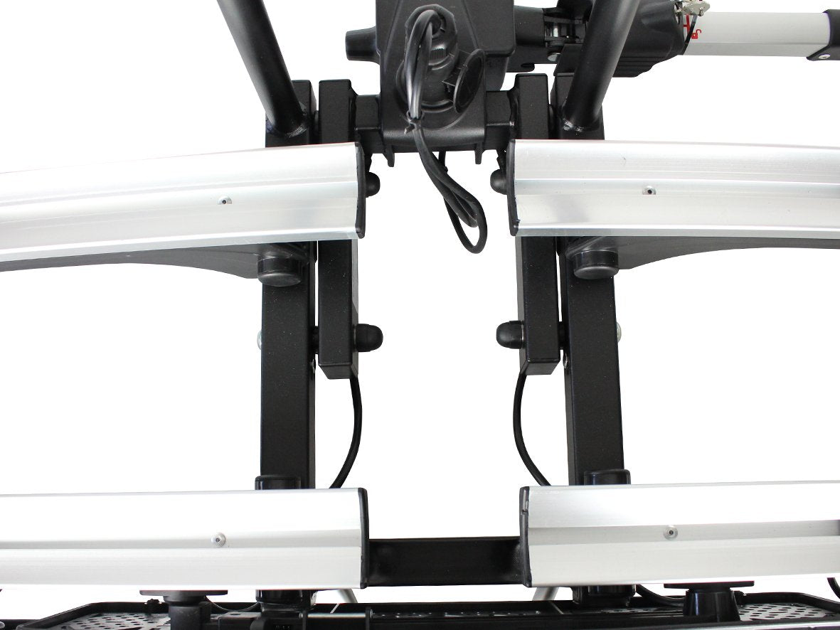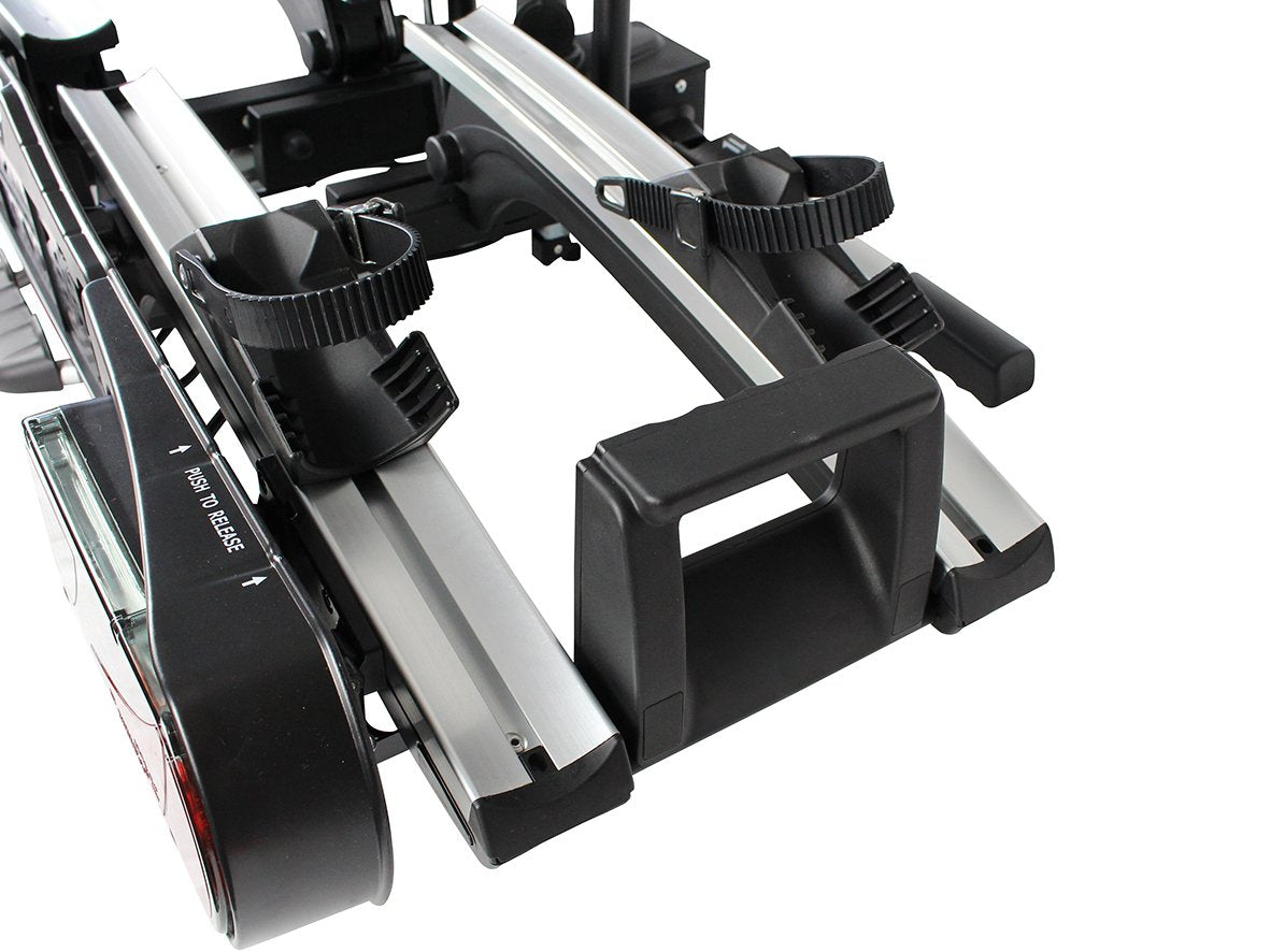 Dank des intelligenten Schnellverschlusses ist der Träger im Handumdrehen auf der Anhängerkupplung montiert. Da er bereits komplett vormontiert ist, sparen Sie sich komplizierte Aufbauarbeiten und sind sofort startklar. Der clevere Abklappmechanismus ermöglicht Ihnen auch bei montierten Velos jederzeit einen bequemen Zugang zum Kofferraum Ihres Fahrzeugs. Für ein gutes Gefühl unterwegs sorgen die umfassenden Sicherheitsfeatures: Sowohl der Träger selbst als auch Ihre Velos sind dank abschliessbarer Halterungen wirksam vor Diebstahl geschützt.