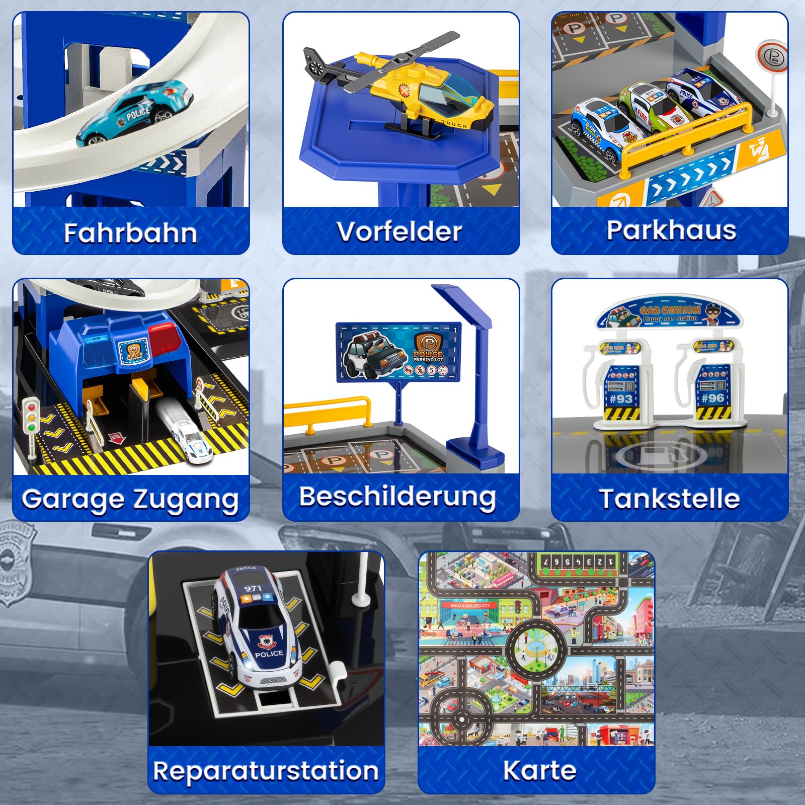 BuzzoXerex 5 Stockwerke Parkgarage Spielzeug Parkhaus - Polizei