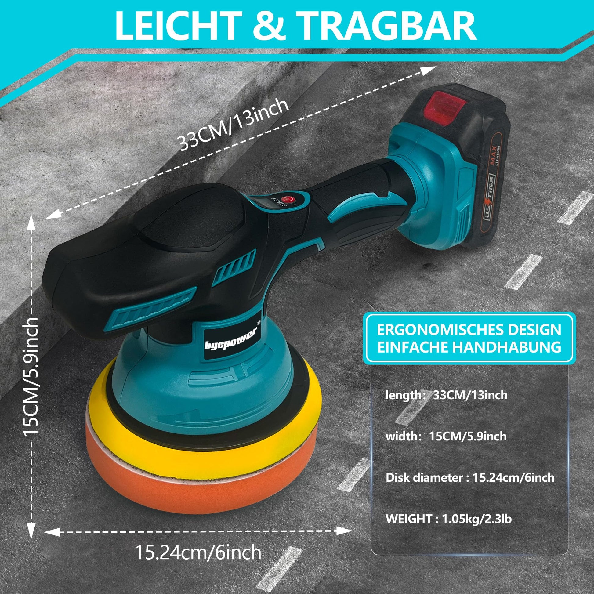bycpower Orbital Poliermaschine Auto Set 6 Zoll – Makita 18V Ohne Akku