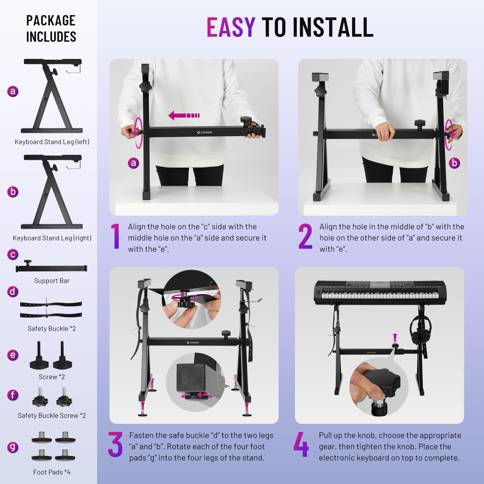 Dieser robuste Keyboardständer von CAHAYA bietet Musikern eine stabile und flexible Basis für ihre Instrumente. Seine durchdachte Z-Form-Konstruktion ist für den professionellen Einsatz ebenso wie für das Üben zu Hause konzipiert und garantiert einen sicheren Stand für Ihr Digitalpiano oder Keyboard.
