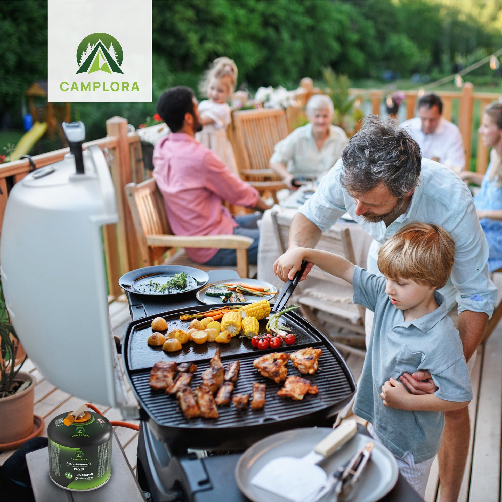 Dank des genormten EN417-Schraubgewindes sind die Kartuschen universell kompatibel mit einer Vielzahl von Geräten wie Campingkochern, Gasgrills oder Heizstrahlern. Das integrierte, selbstdichtende Sicherheitsventil bietet Ihnen maximale Flexibilität und Sicherheit: Sie können die Kartusche jederzeit vom Gerät abnehmen und später wiederverwenden, auch wenn sie noch nicht leer ist, ohne dass Gas ungewollt entweicht.