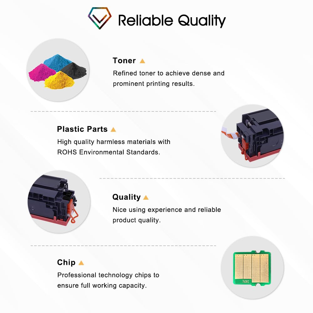 - Lieferumfang: Ein Set mit 4 Tonerkartuschen (1x Schwarz, 1x Cyan, 1x Gelb, 1x Magenta).