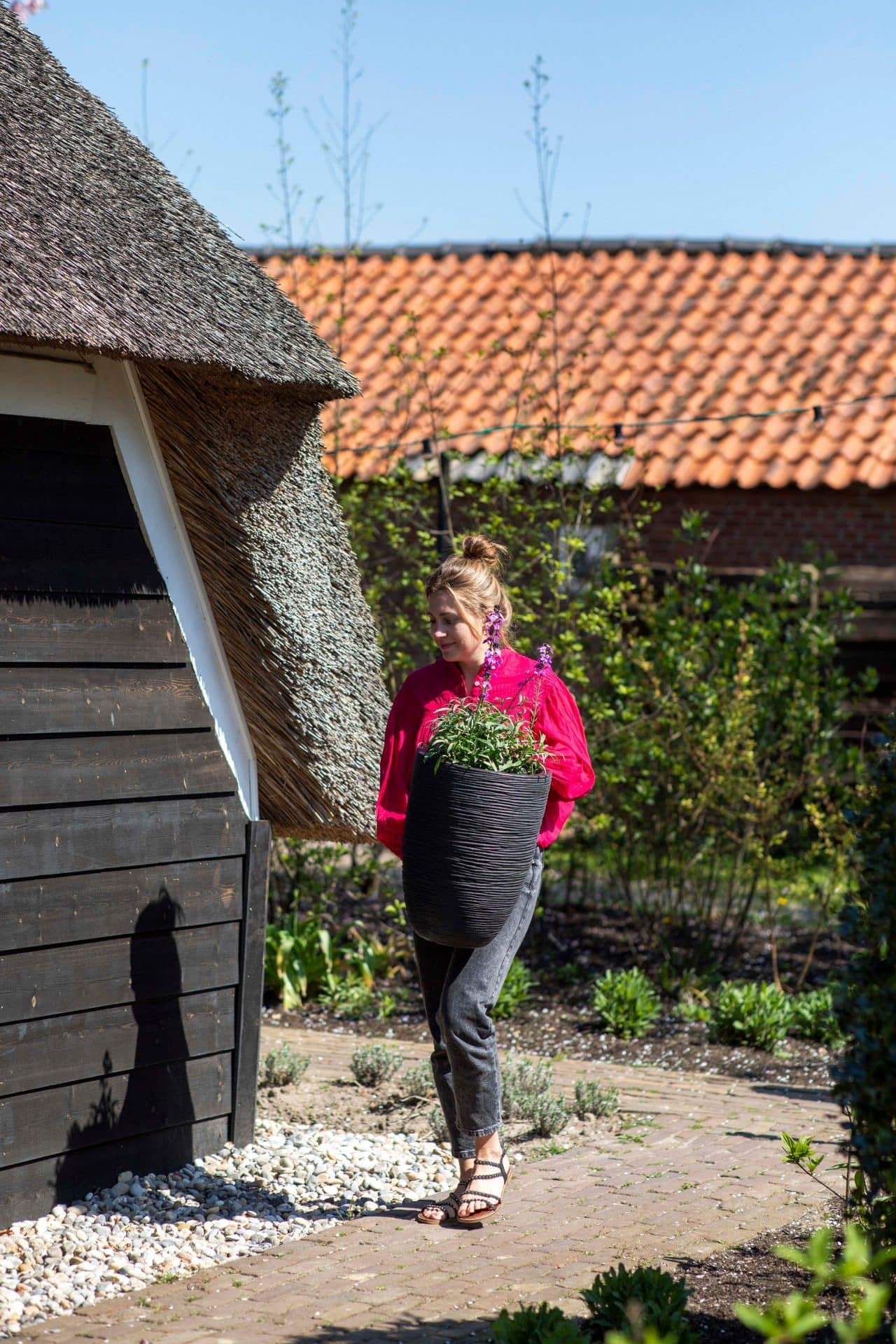 Trotz seines geringen Gewichts, das die Handhabung erleichtert, ist das Material aussergewöhnlich stabil und bruchfest. Die moderne Rippenstruktur und die elegante, anthrazitfarbene Oberfläche machen das Gefäss zu einem zeitlosen Designobjekt, das sich harmonisch in jede Umgebung – ob drinnen oder draussen – einfügt.