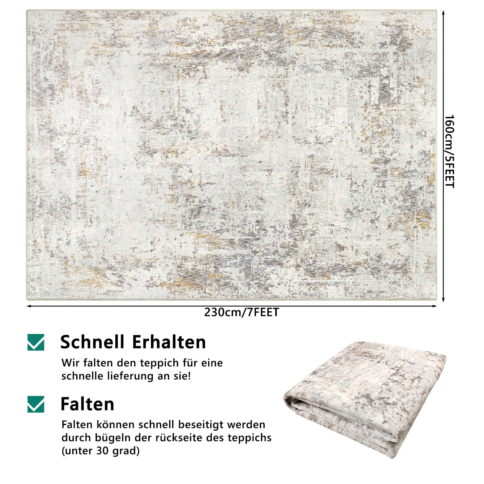 Capslpad Abstrakt Beige Wohnzimmer Teppich - Kurzflor 160x230cm