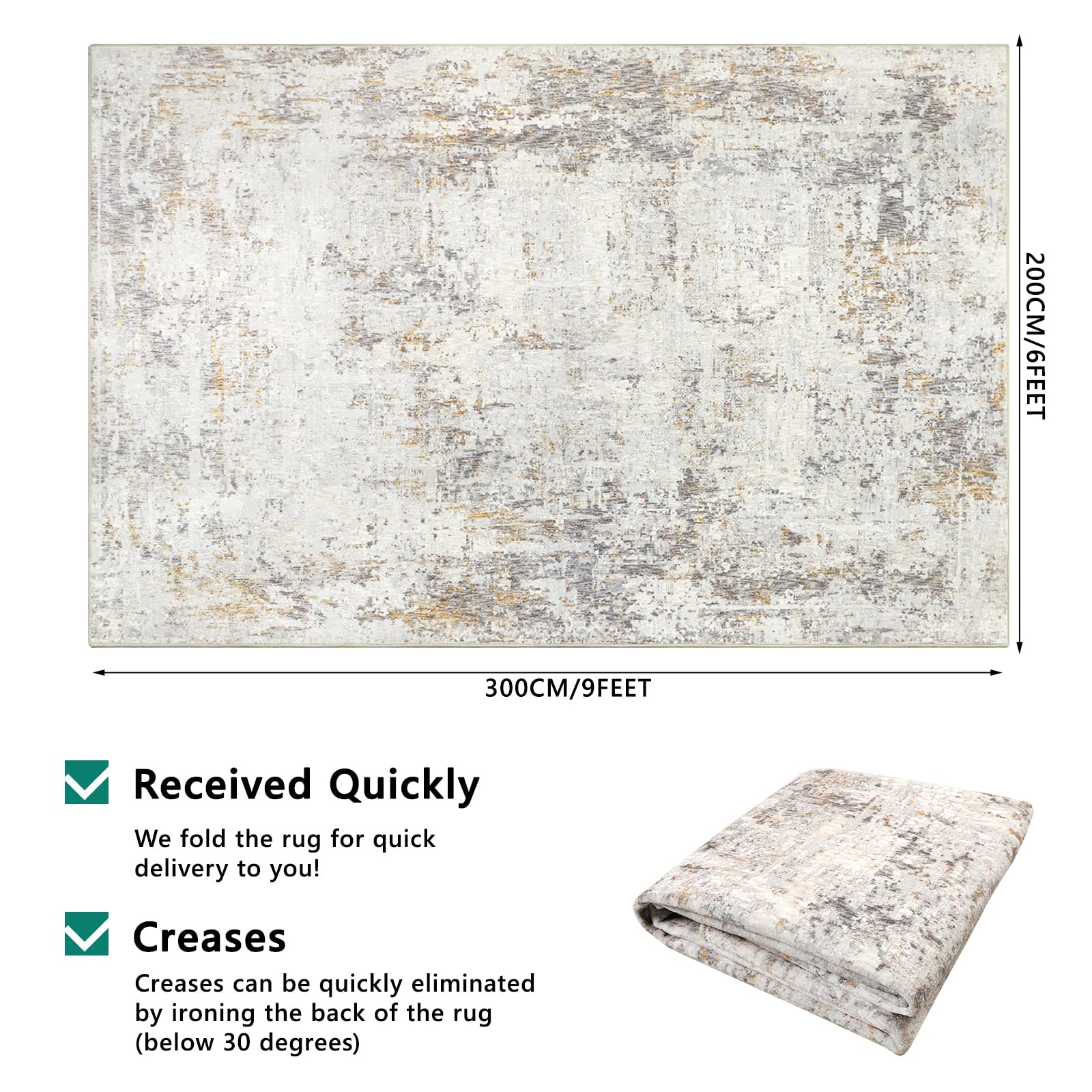 - Abmessungen: Grosszügige 200 x 300 cm, ideal für weitläufige Bereiche.