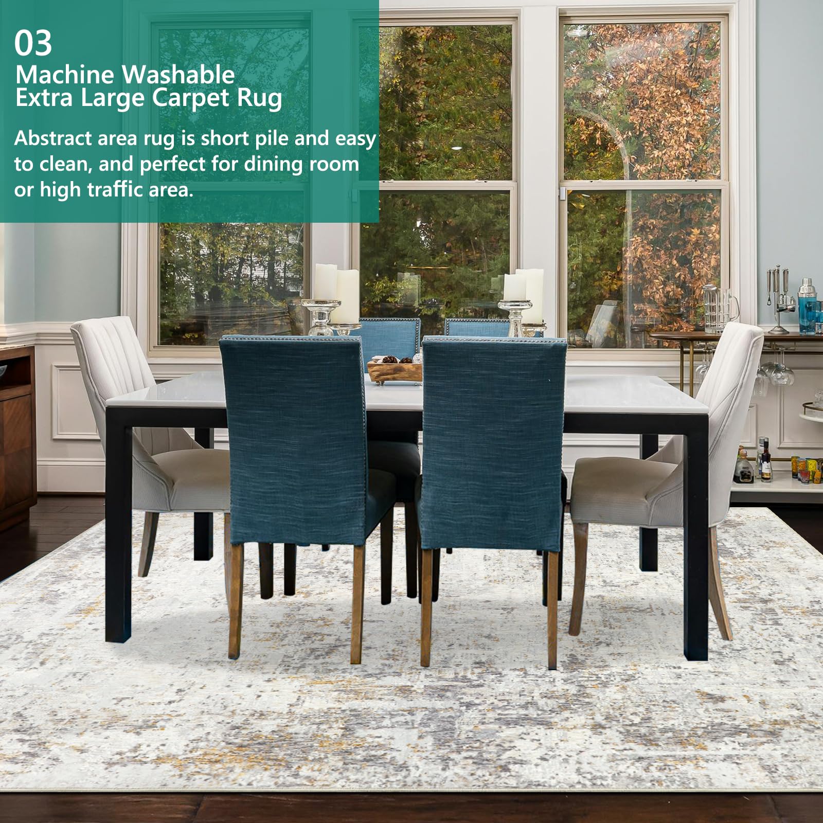 - Pflege: Der Teppich ist waschbar und dank seines flachen Profils problemlos von Saugrobotern zu reinigen.