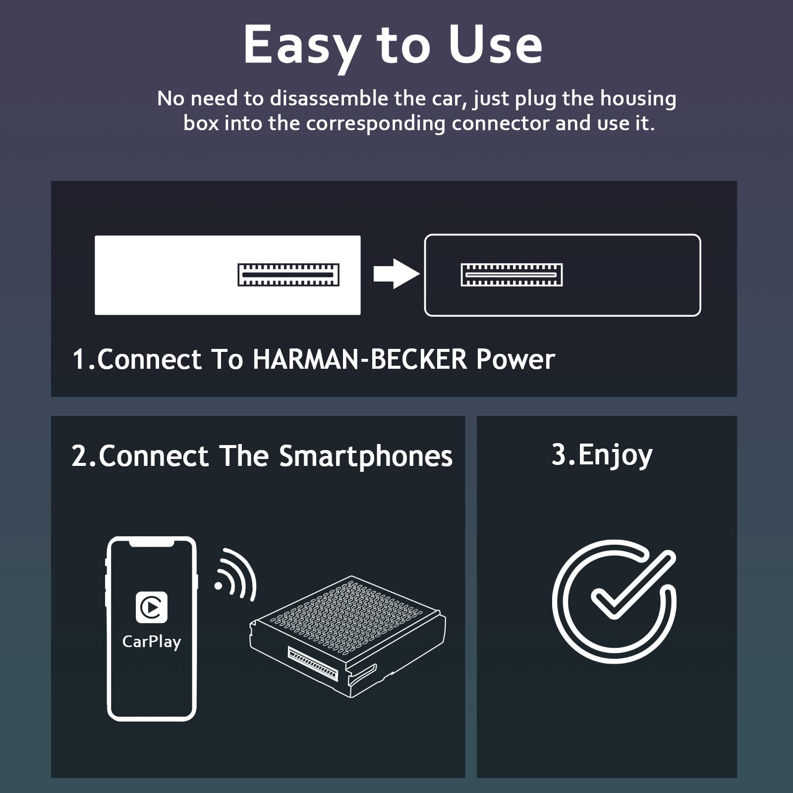 - Einfache Installation: Der Adapter wird als Plug-and-Play-Lösung direkt in den vorhandenen Harman Becker Anschluss im Handschuhfach gesteckt, ohne dass das Fahrzeug demontiert werden muss.