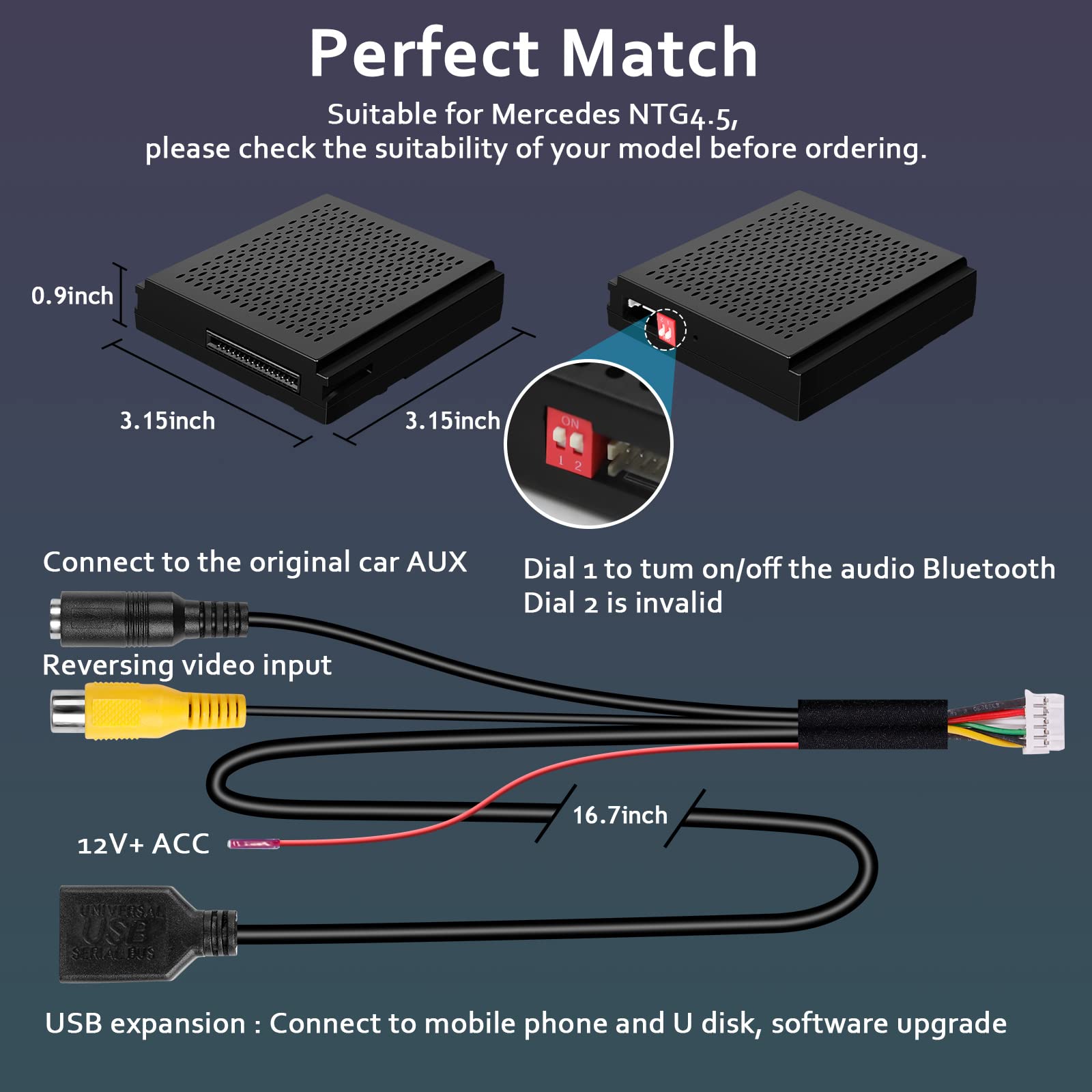 - Passend für: Mercedes-Benz Modelle der A, B, C, E, CLA, GLA, GLK, ML und SLD-Klasse (Baujahre 2011-2016) mit NTG4.5 System.