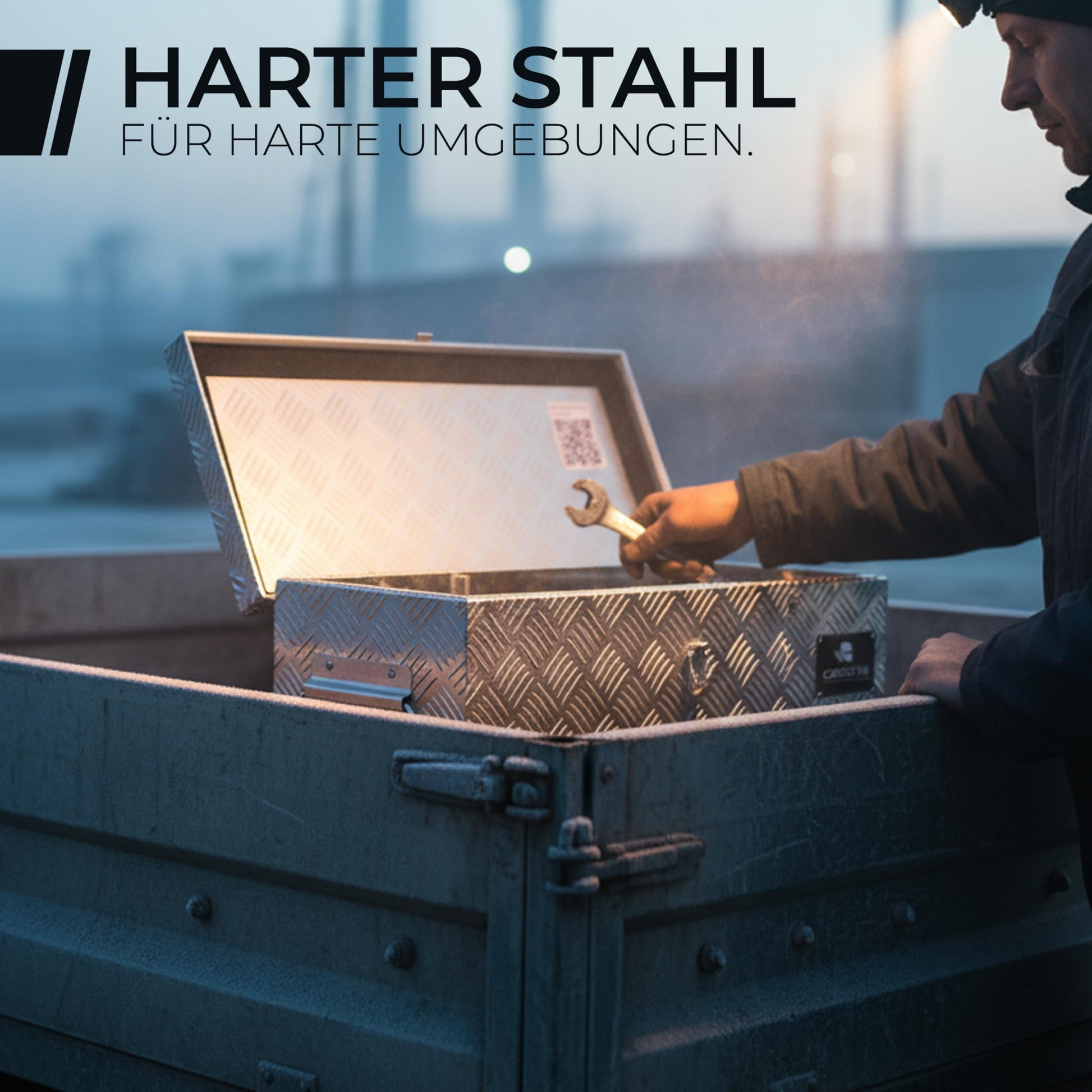 Schützen Sie wertvolles Werkzeug, Spanngurte oder andere Utensilien zuverlässig vor Diebstahl und Witterungseinflüssen. Dank der anpassbaren Fächer bleibt alles an seinem Platz, ist sicher verstaut und bei Bedarf sofort griffbereit.
